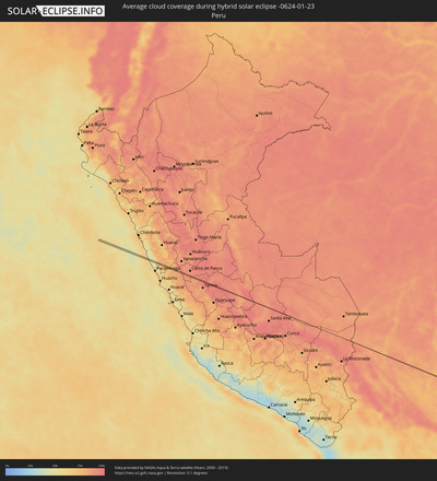 The following maps show the average cloud coverage for the day of the hybrid solar eclipse.