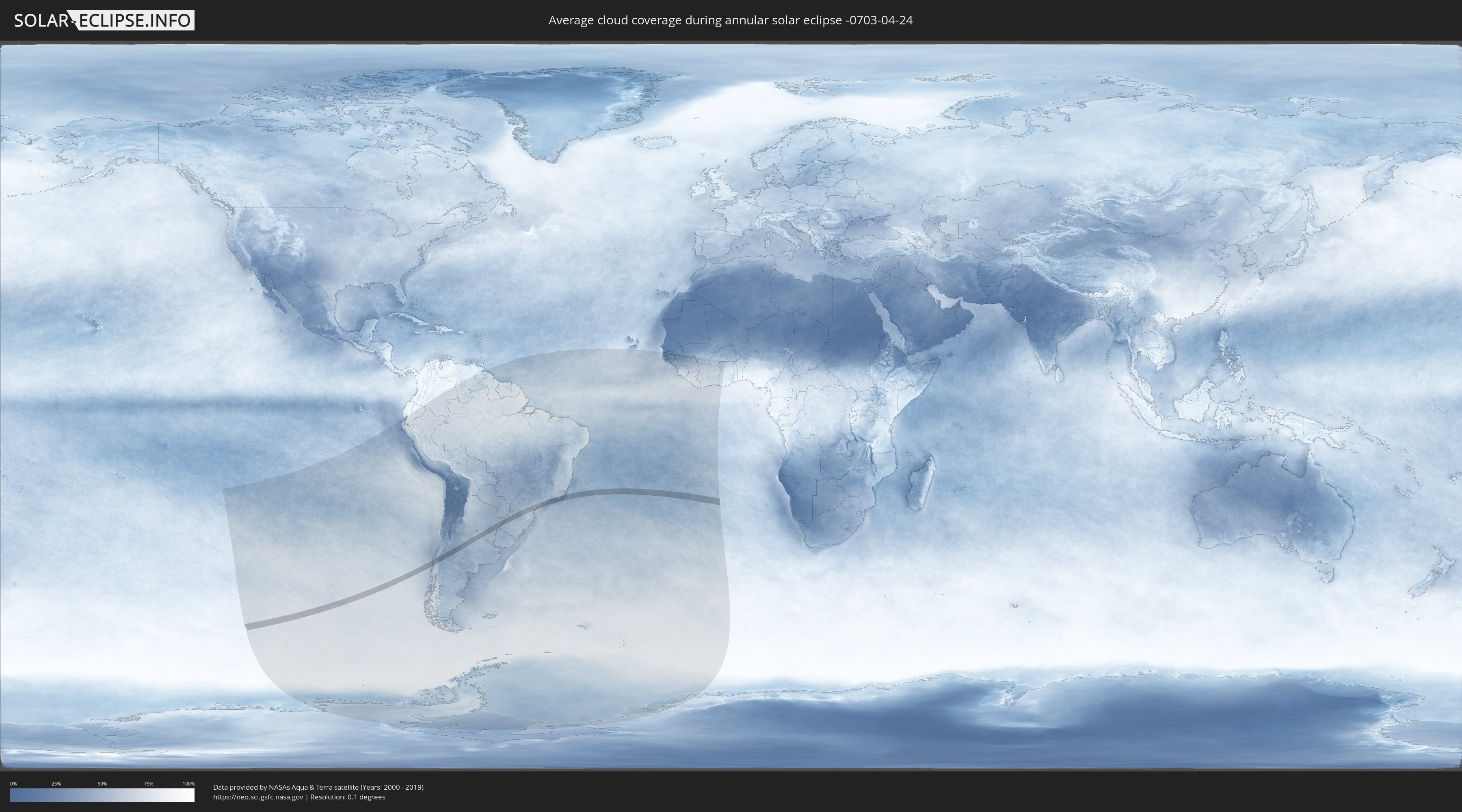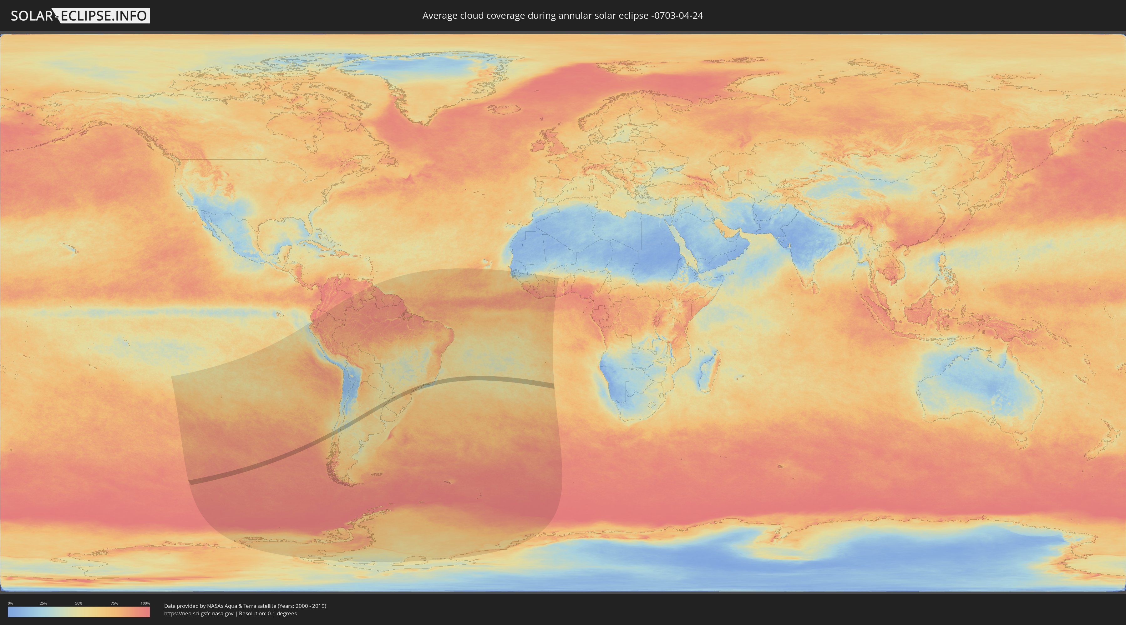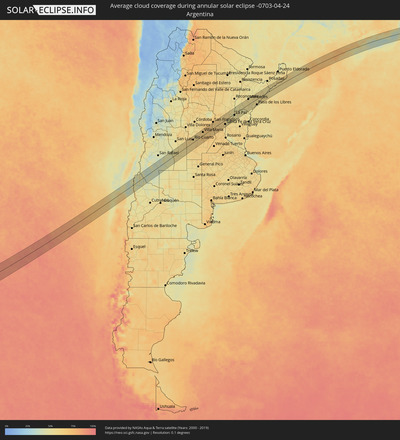 The following maps show the average cloud coverage for the day of the annular solar eclipse.