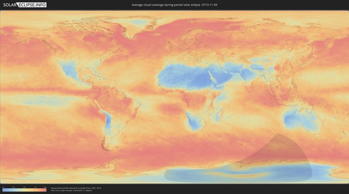 The following maps show the average cloud coverage for the day of the partial solar eclipse.