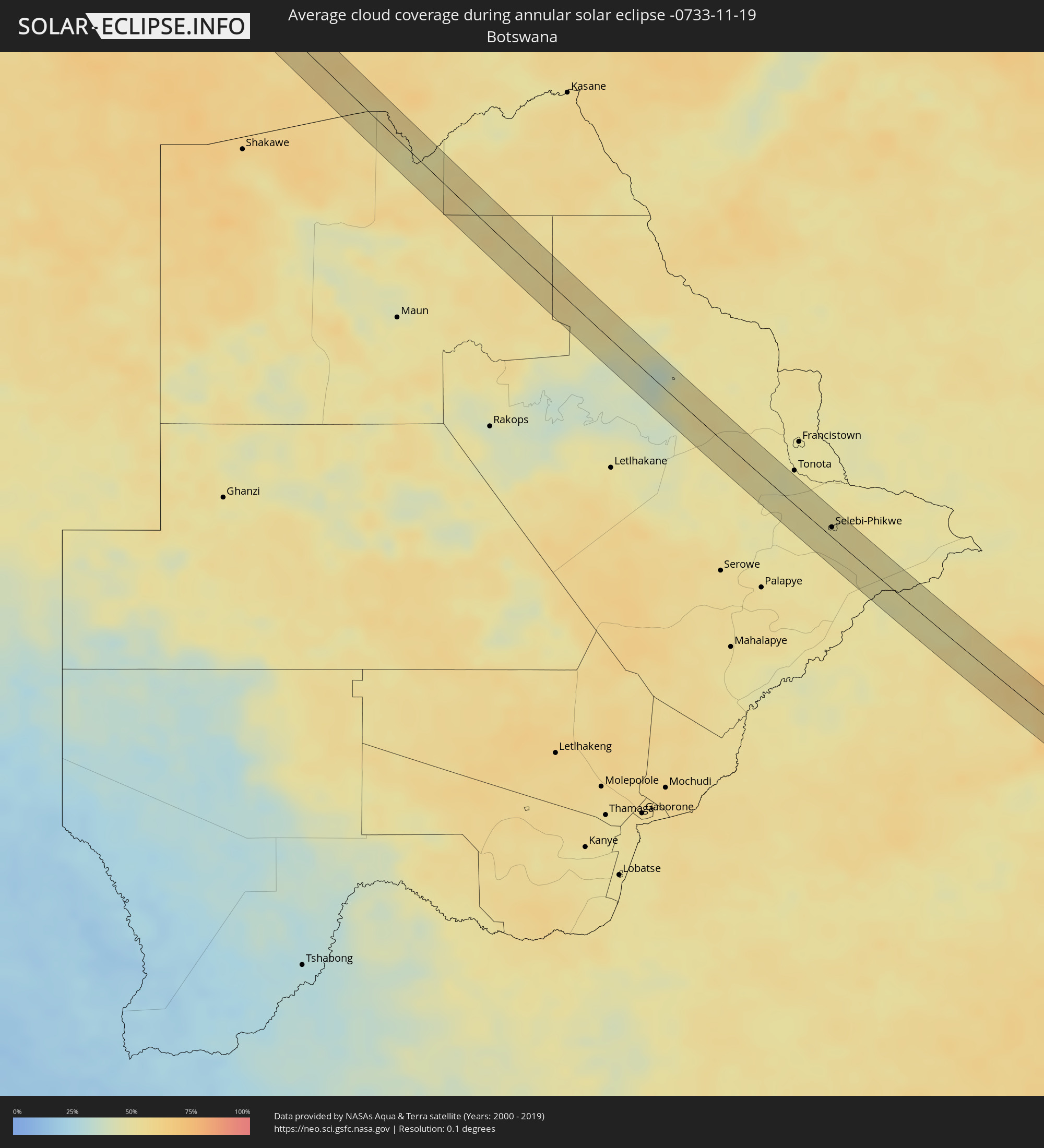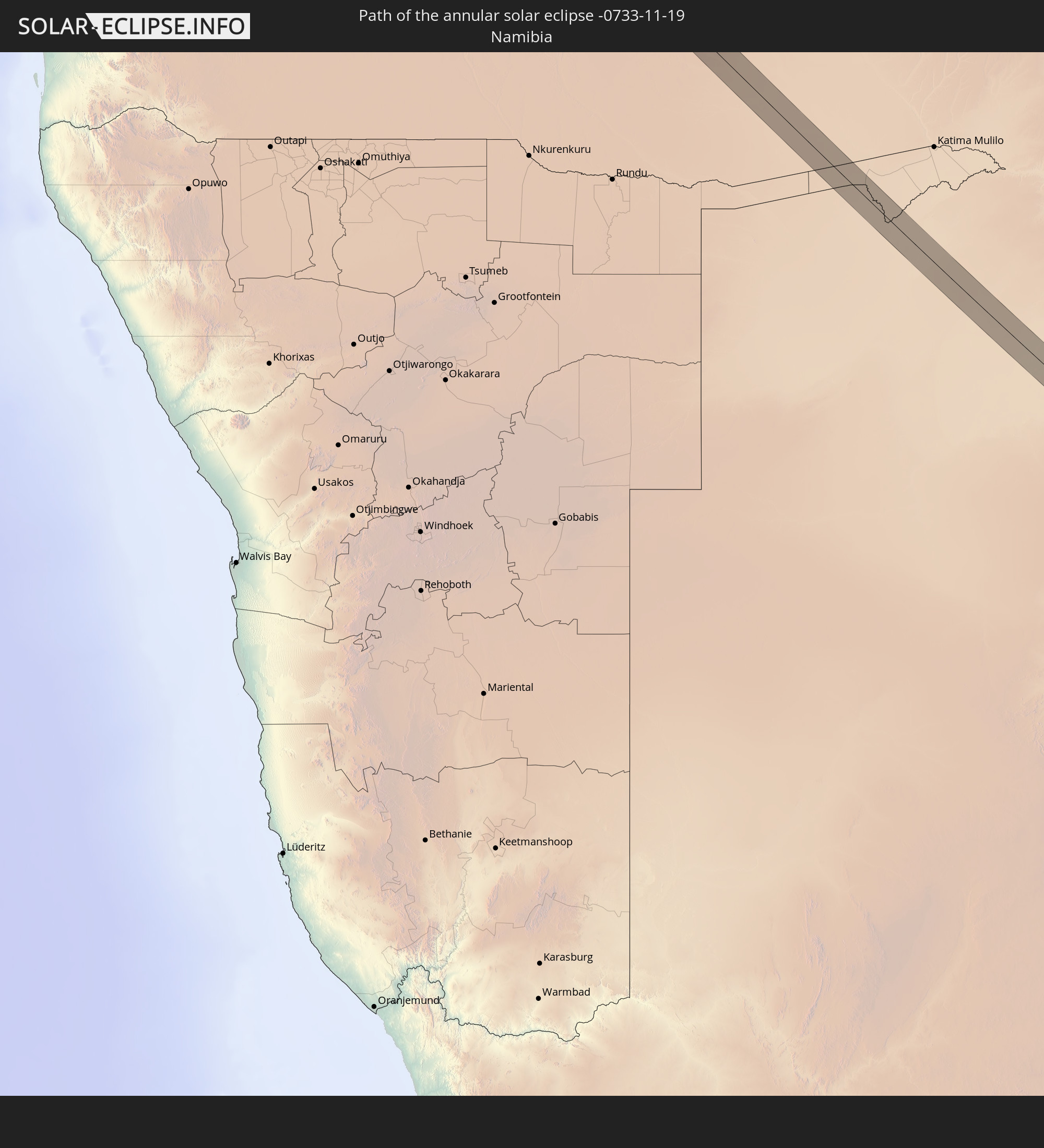 Wo kann man die Sonnenfinsternis vom 11/19/-0733 sehen?