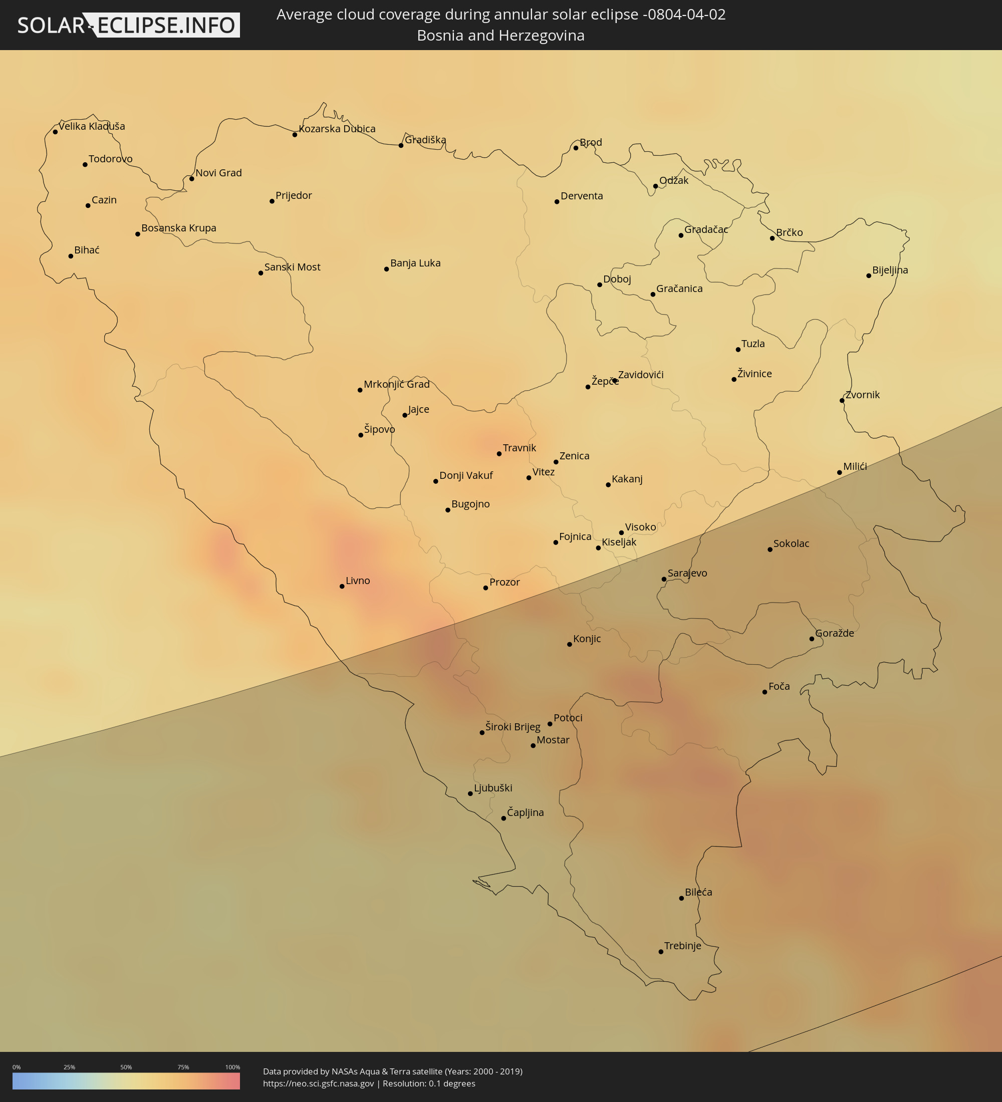 Die Sonnenfinsternis am 04/02/-0804 kann man in 86 Ländern als partielle Sonnenfinsternis beobachten.