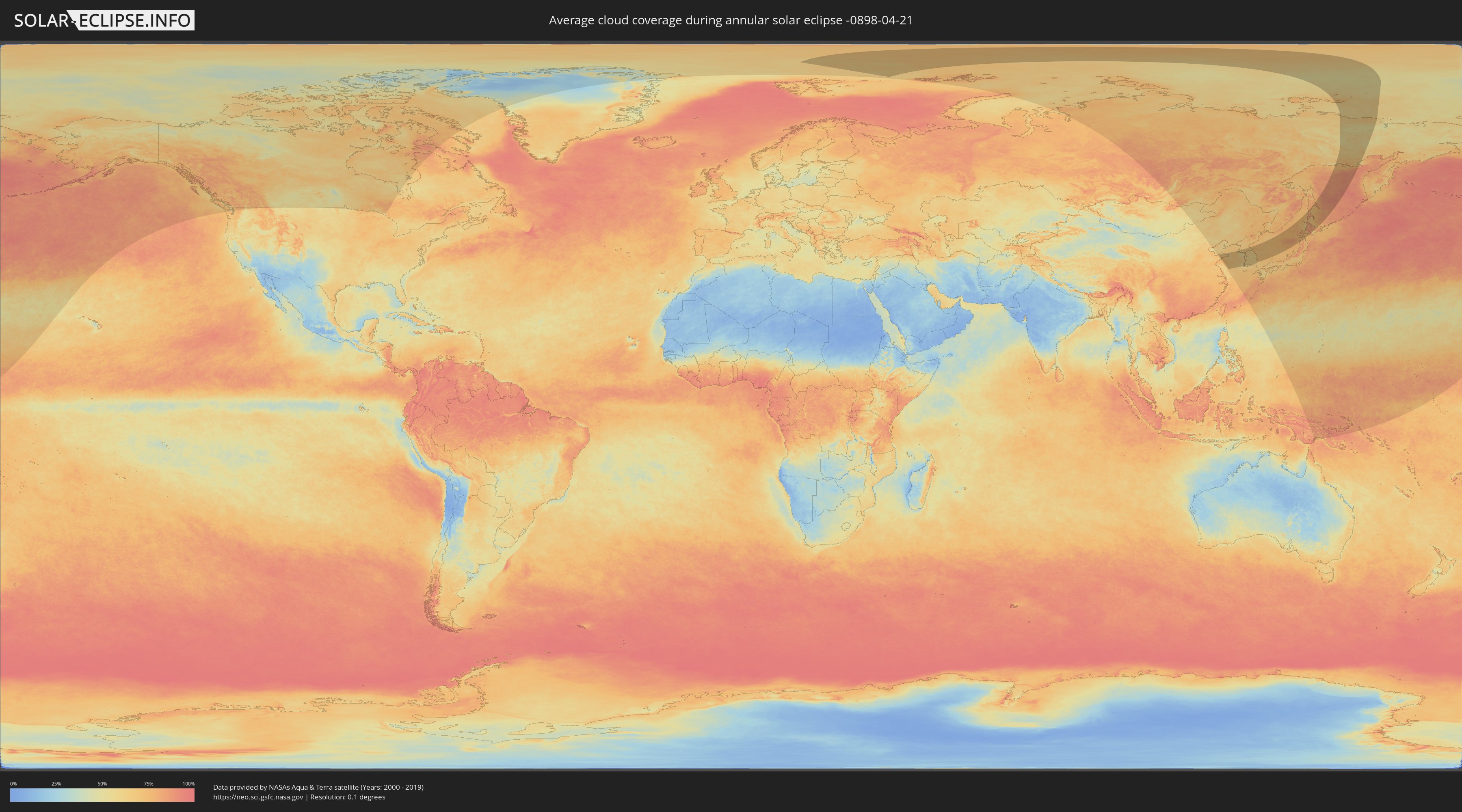 The following maps show the average cloud coverage for the day of the annular solar eclipse.