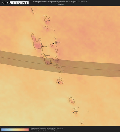 The following maps show the average cloud coverage for the day of the annular solar eclipse.
