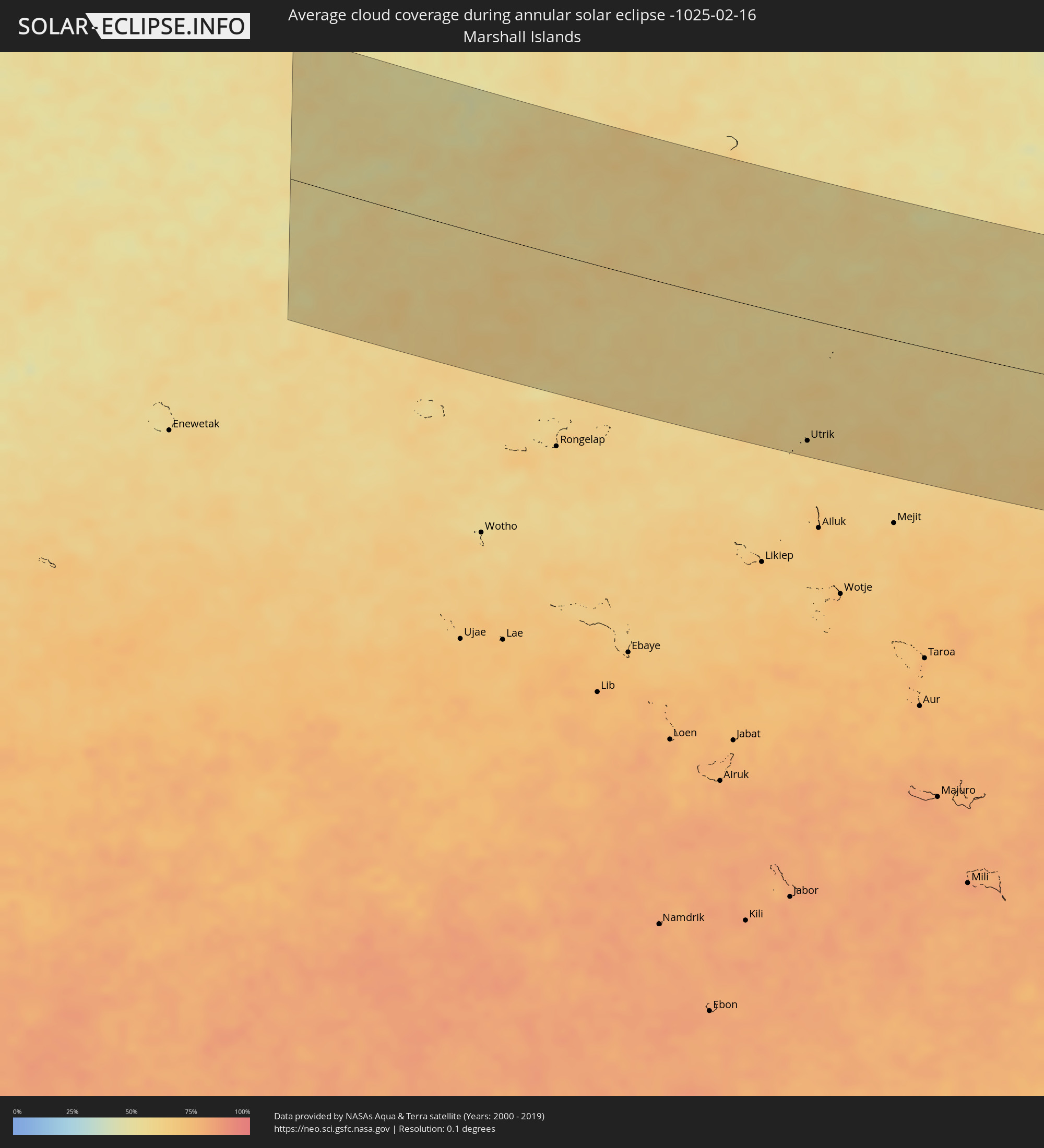 Wo kann man die Sonnenfinsternis vom 02/16/-1025 sehen?
