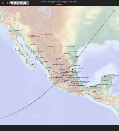 Where is the best place to see the hybrid solar eclipse of 03/06/-1119?