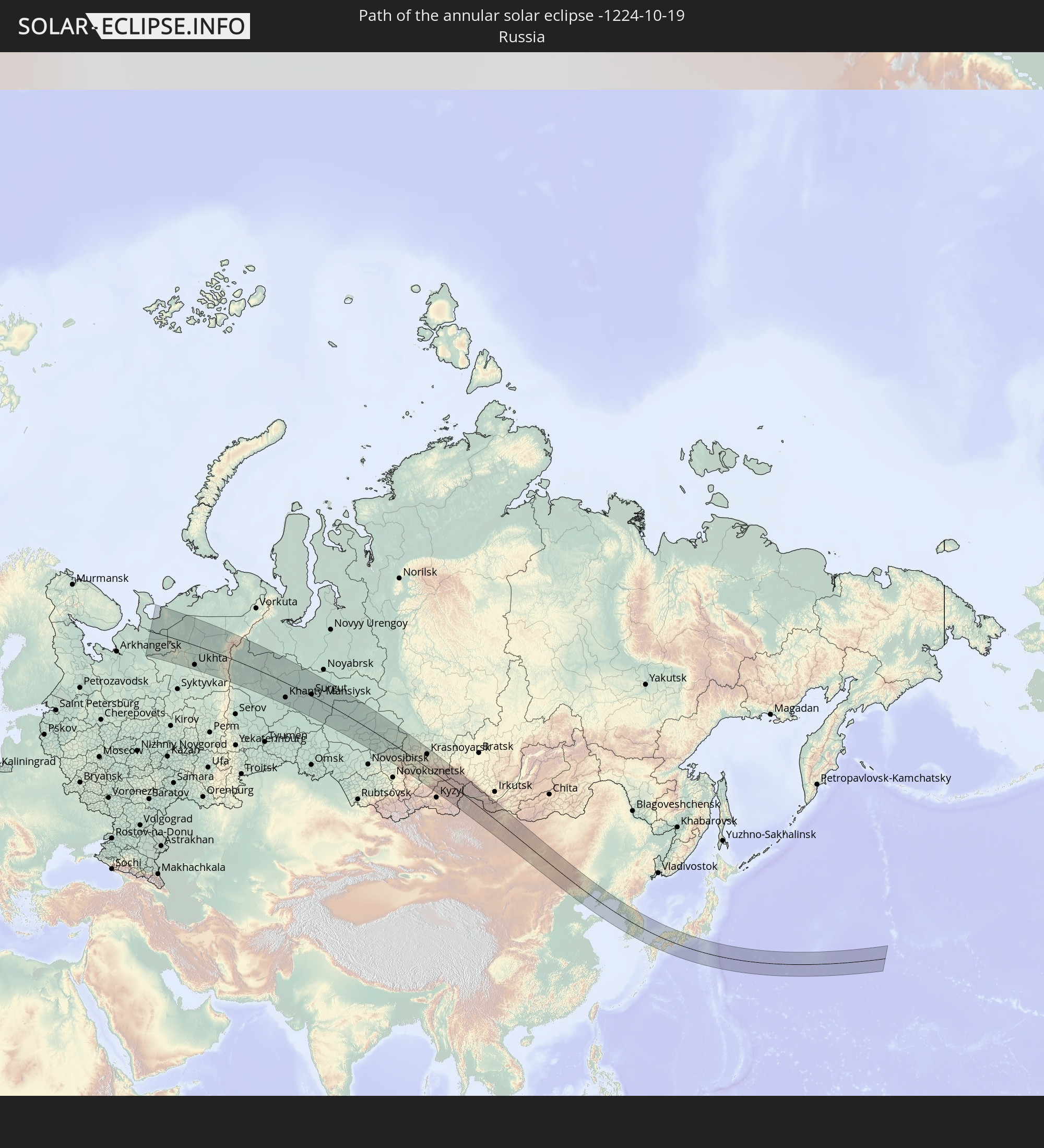 Wo kann man die Sonnenfinsternis vom 10/19/-1224 sehen?