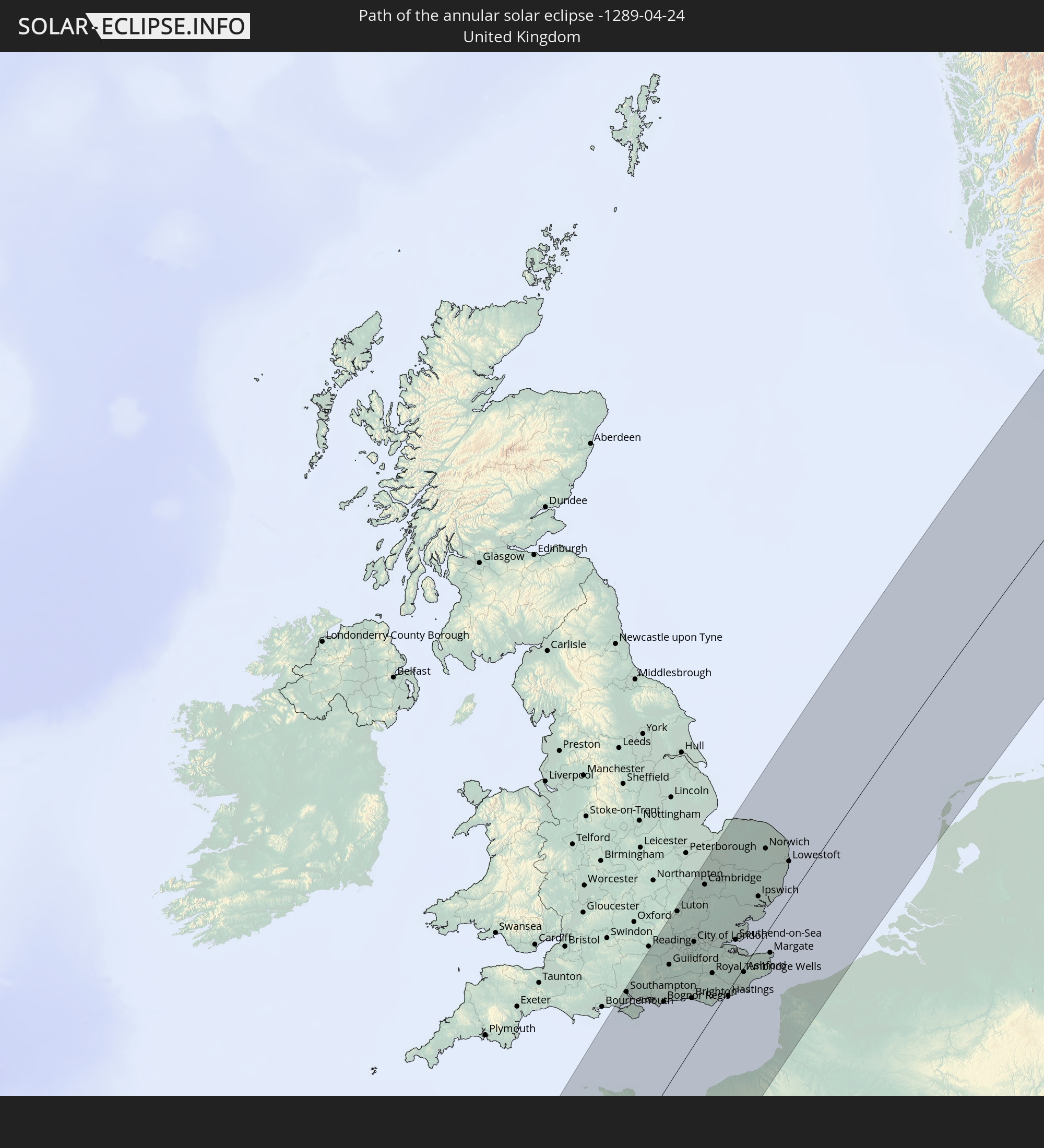 Wo kann man die Sonnenfinsternis vom 04/24/-1289 sehen?