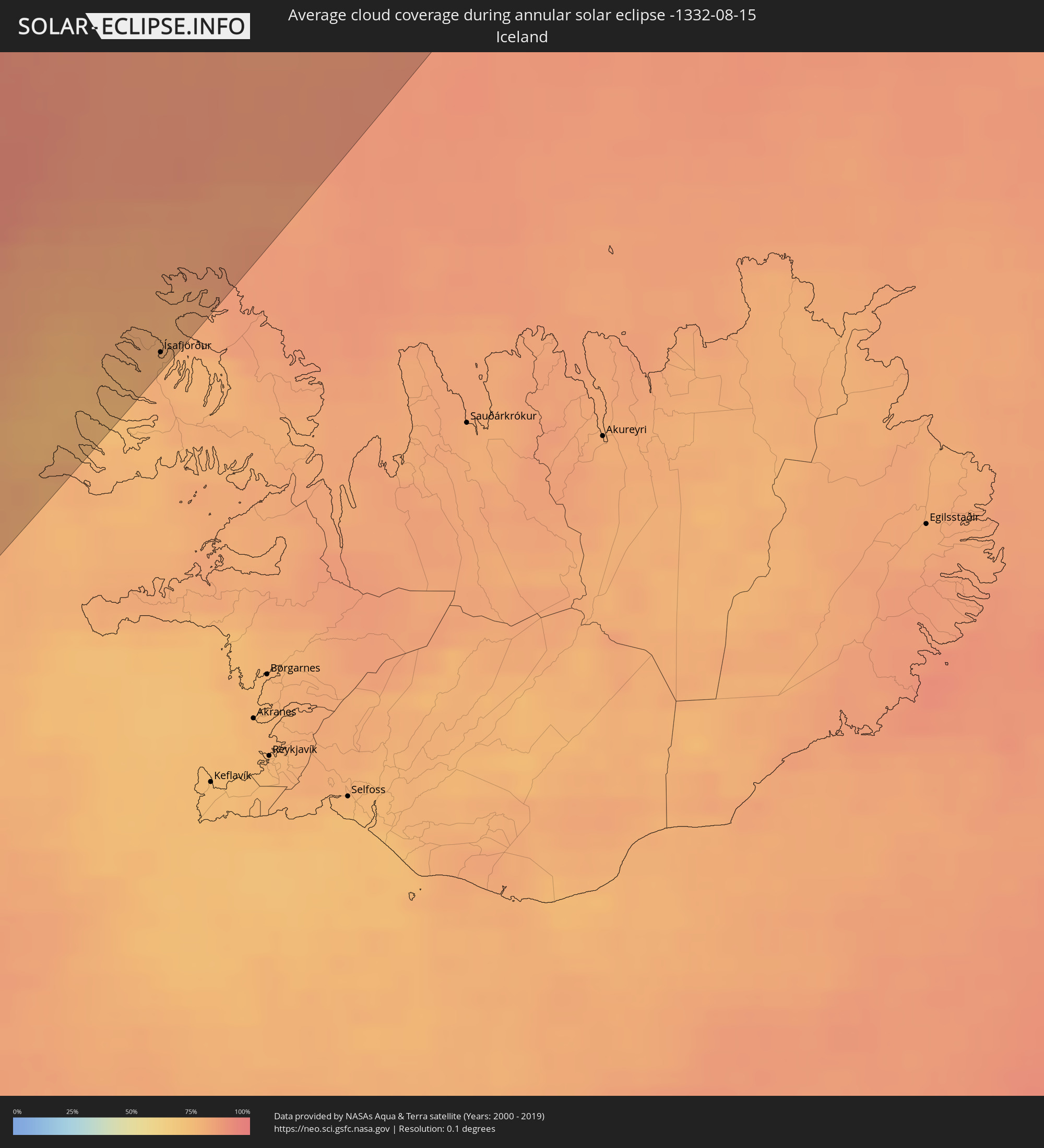 The following maps show the average cloud coverage for the day of the annular solar eclipse.