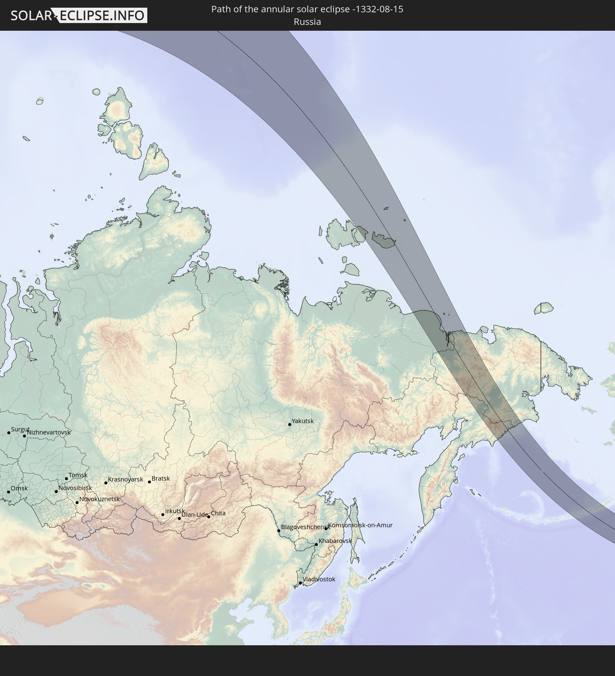 Wo kann man die Sonnenfinsternis vom 08/15/-1332 sehen?