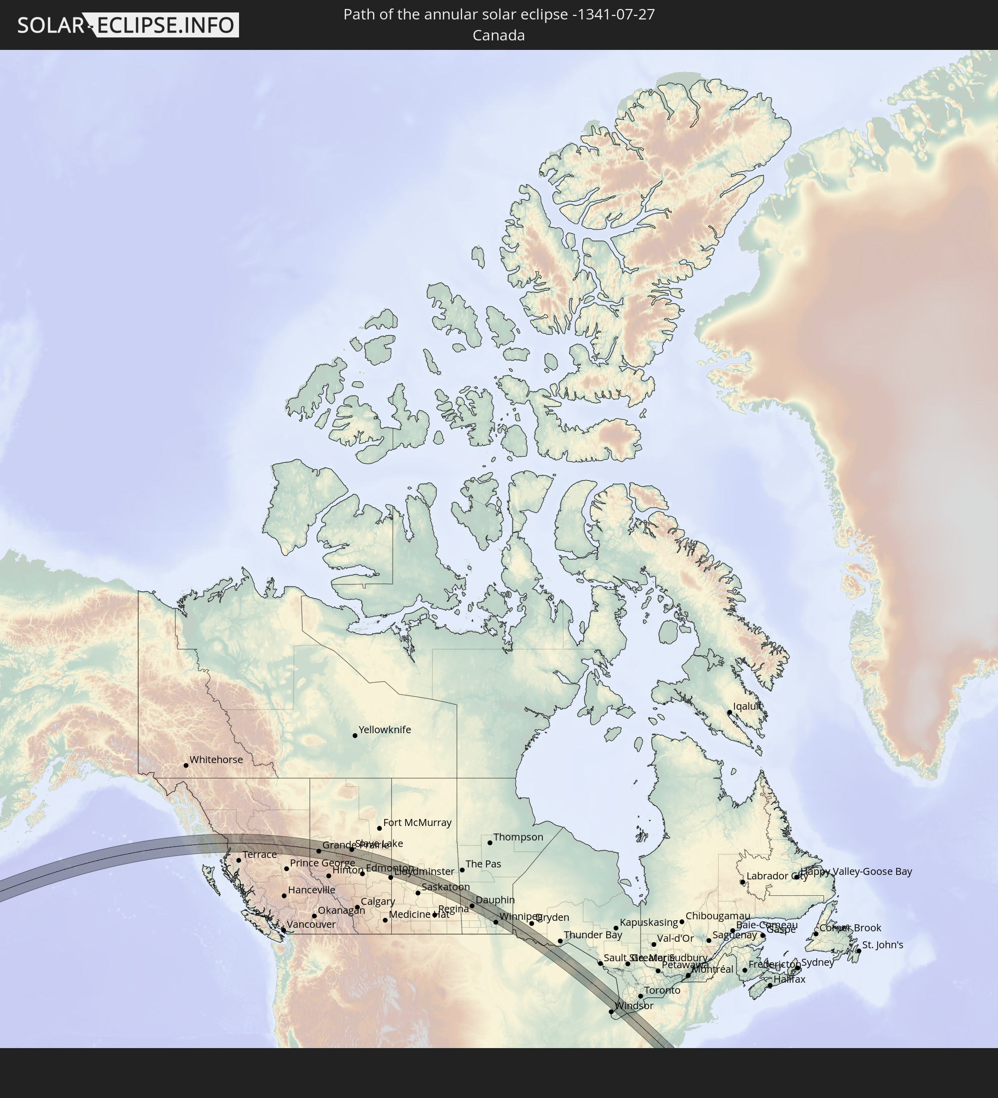 Wo kann man die Sonnenfinsternis vom 07/27/-1341 sehen?