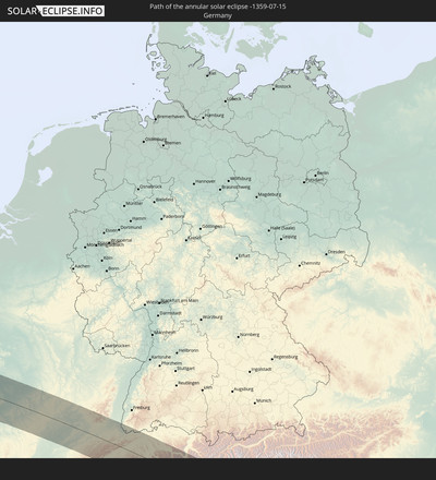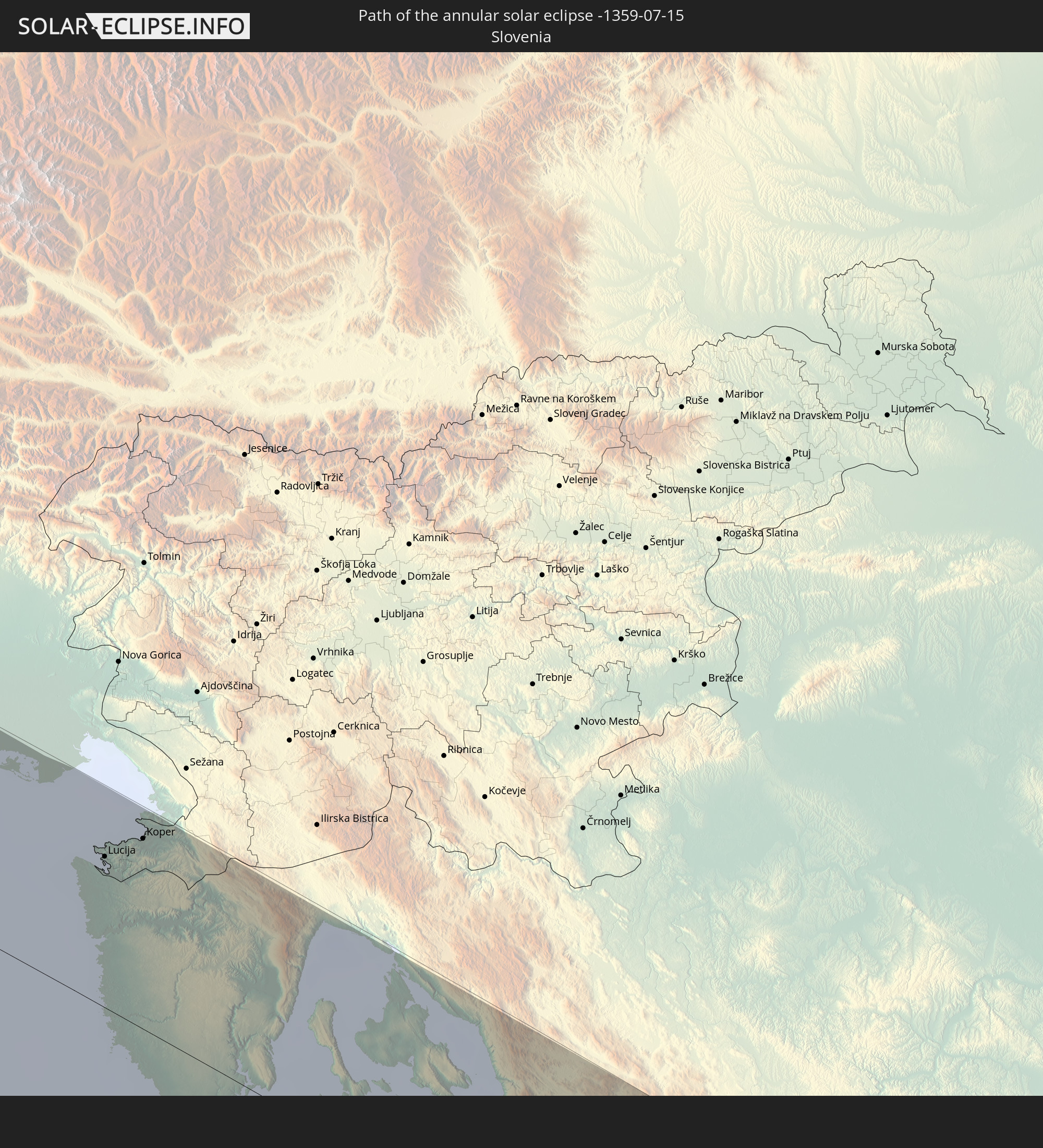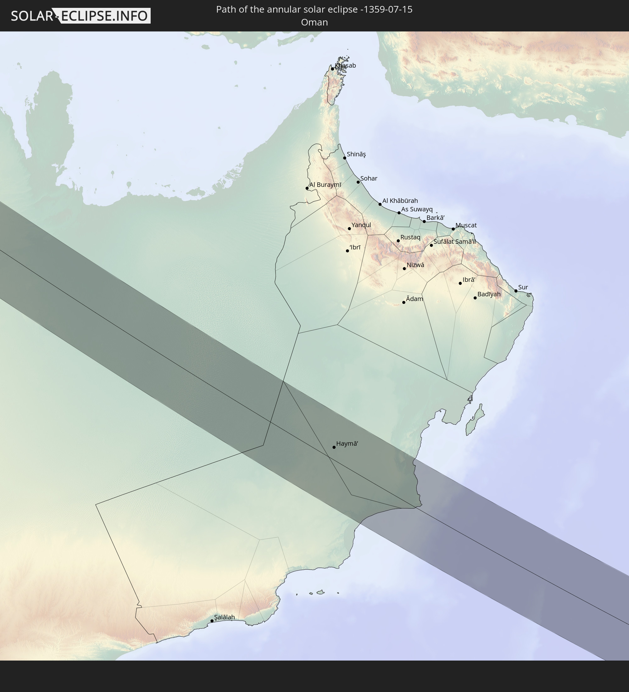 Wo kann man die Sonnenfinsternis vom 07/15/-1359 sehen?