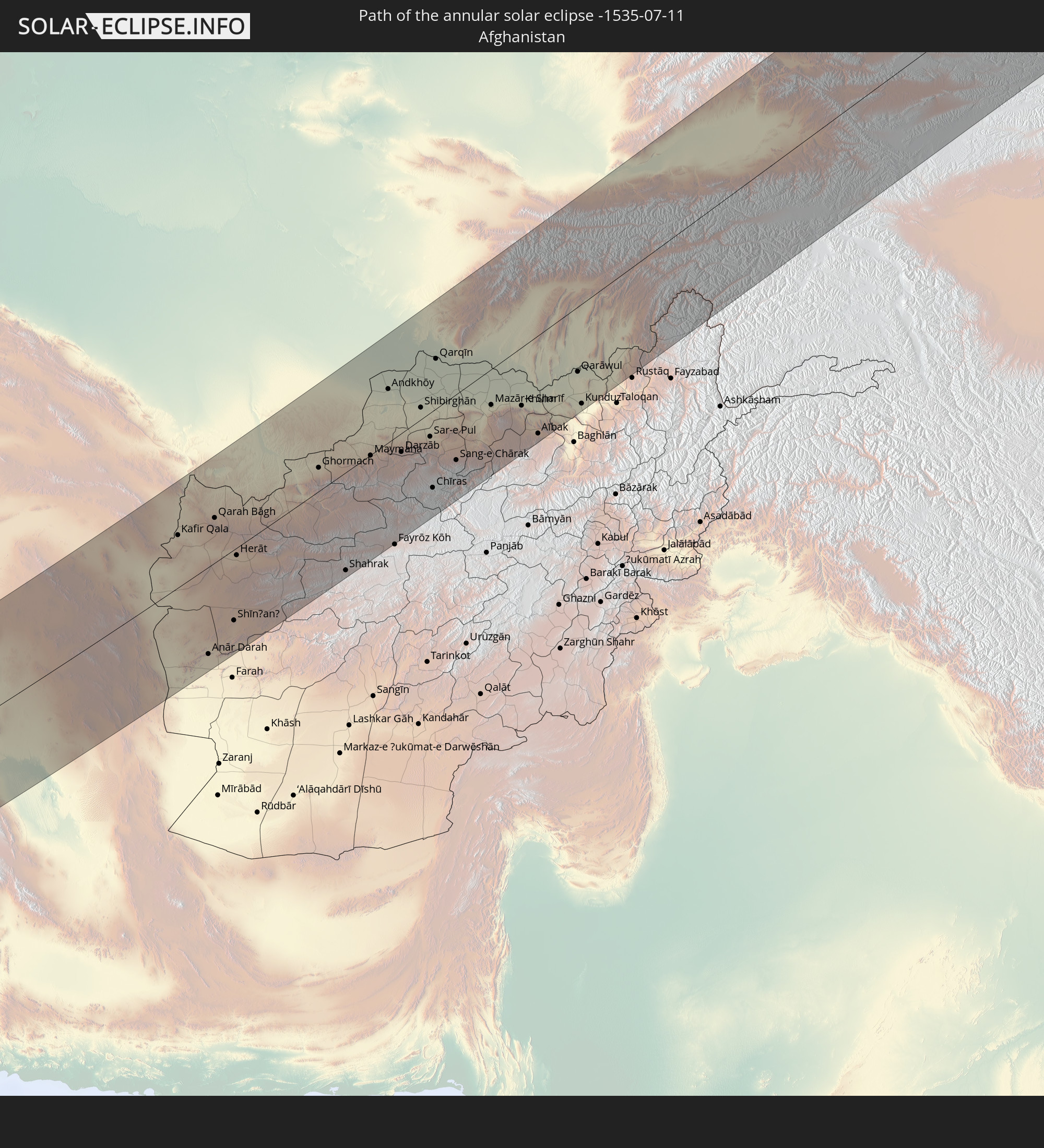 Wo kann man die Sonnenfinsternis vom 07/11/-1535 sehen?