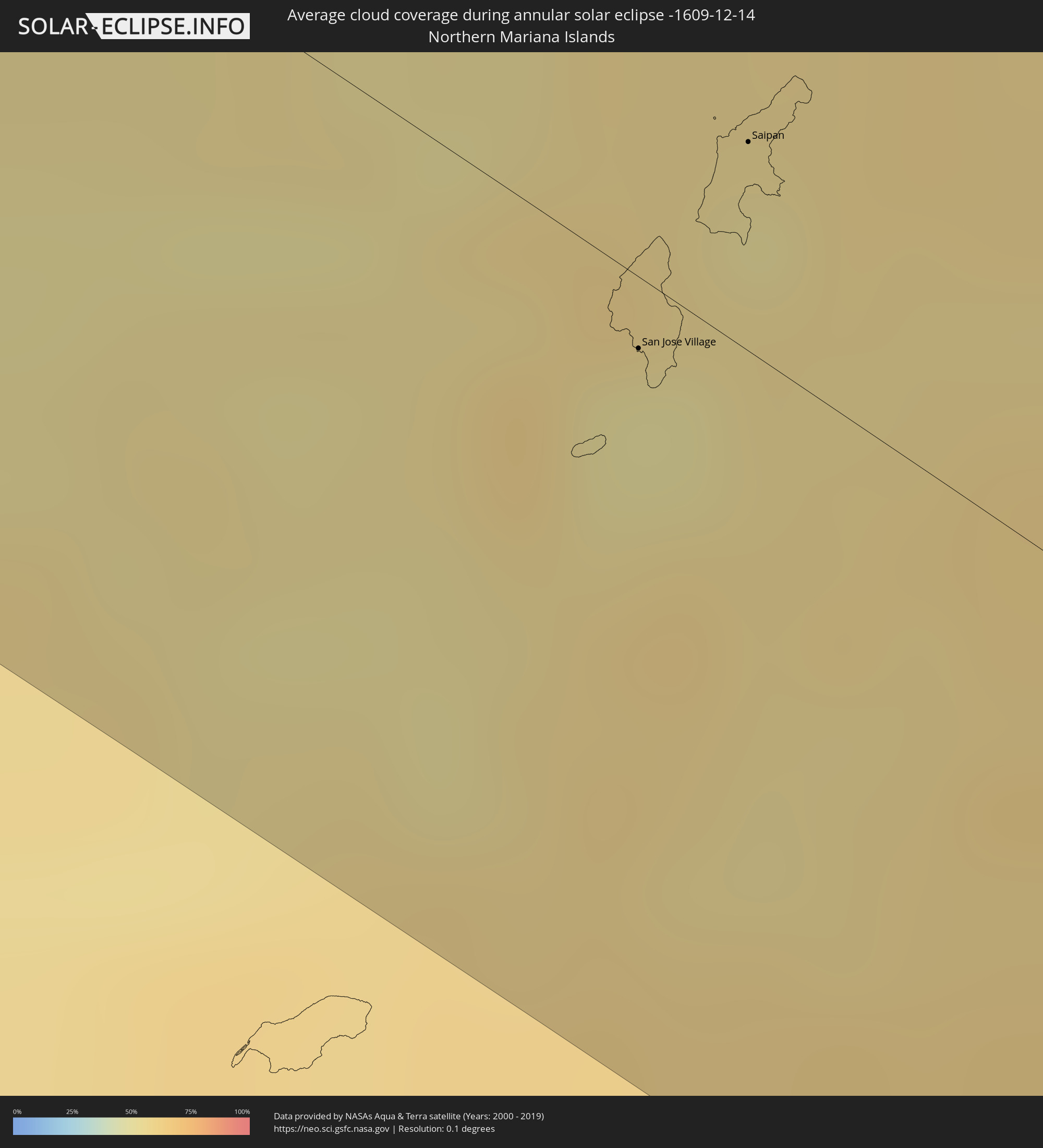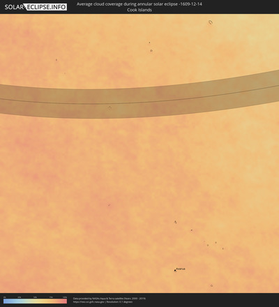 The following maps show the average cloud coverage for the day of the annular solar eclipse.