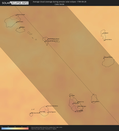 Die Sonnenfinsternis am 08/28/-1789 kann man in 100 Ländern als partielle Sonnenfinsternis beobachten.