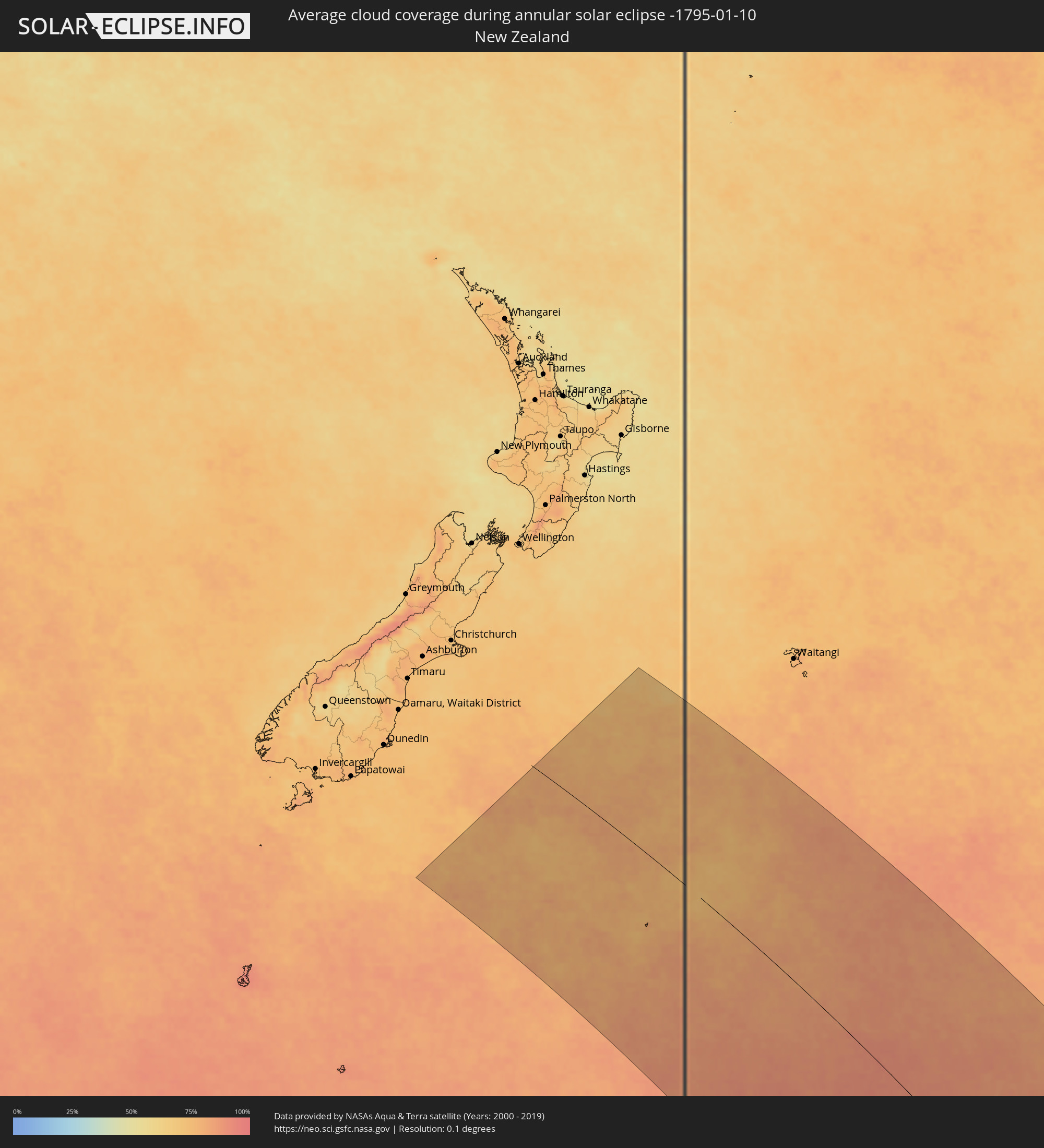 The following maps show the average cloud coverage for the day of the annular solar eclipse.
