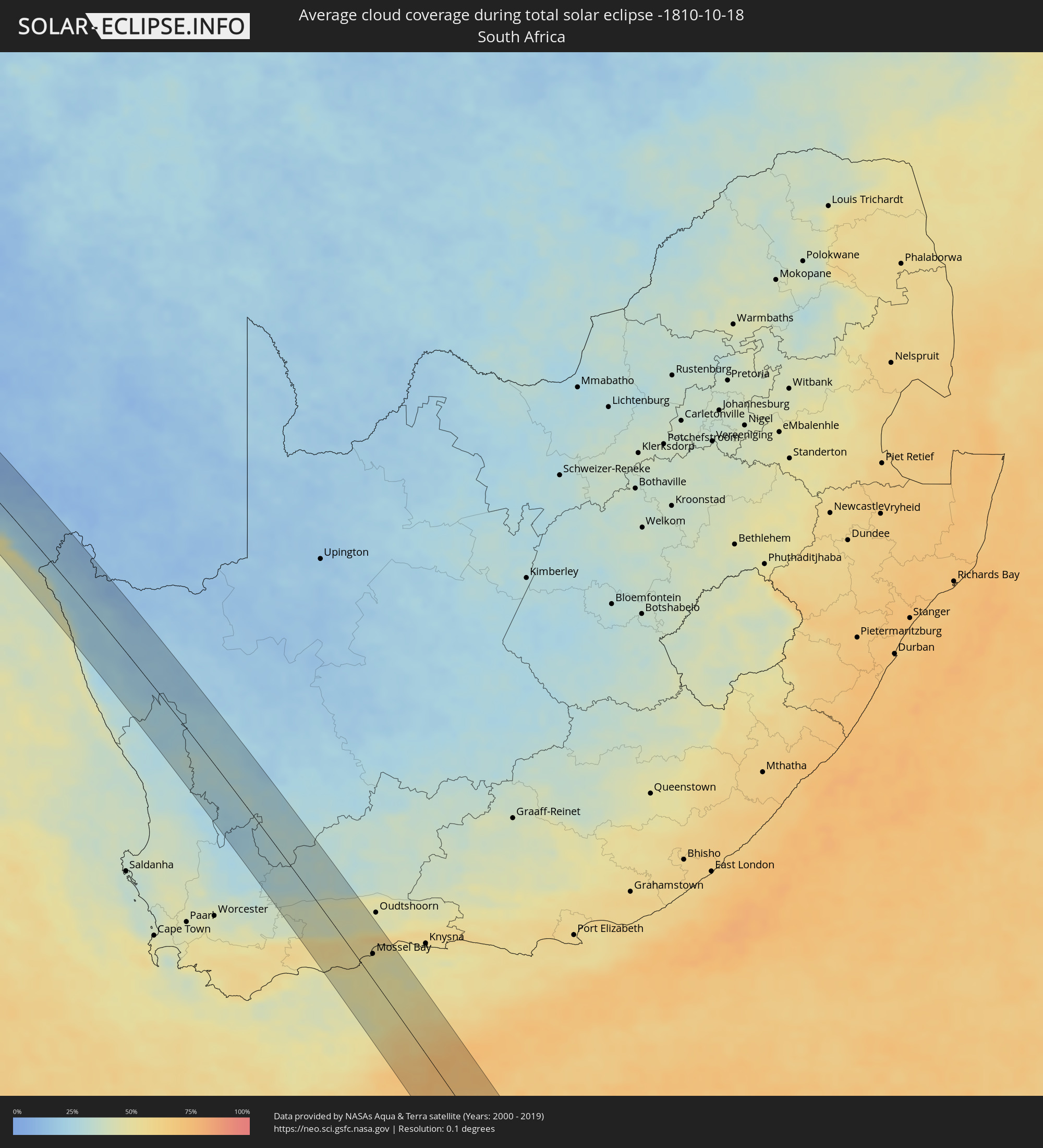 Wo kann man die Sonnenfinsternis vom 10/18/-1810 sehen?