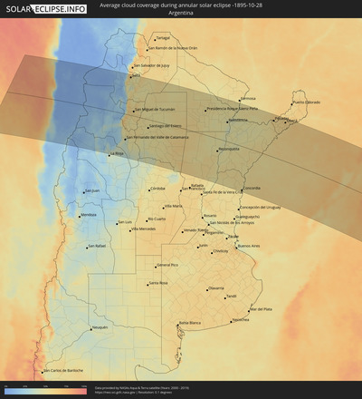 The following maps show the average cloud coverage for the day of the annular solar eclipse.