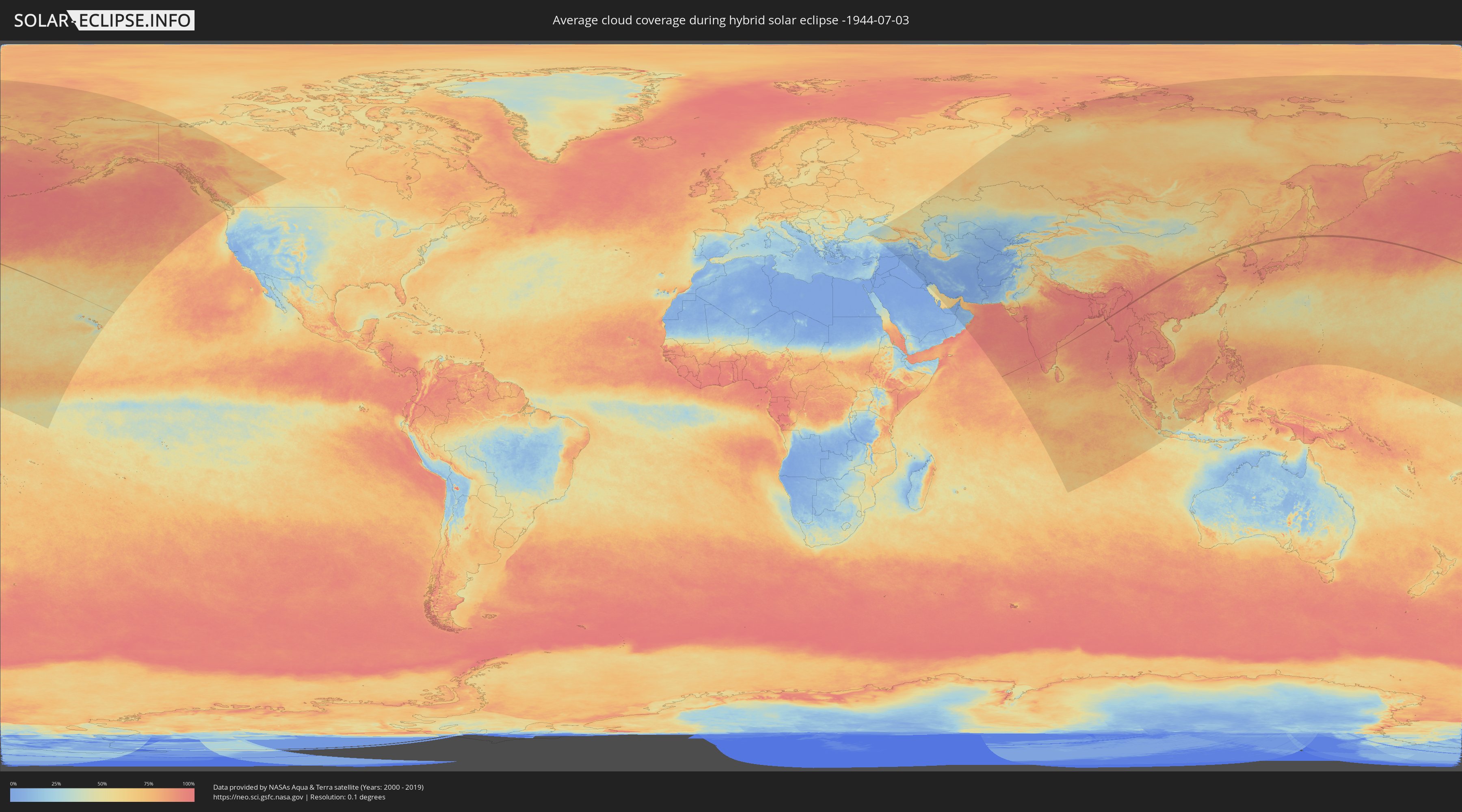 The following maps show the average cloud coverage for the day of the hybrid solar eclipse.