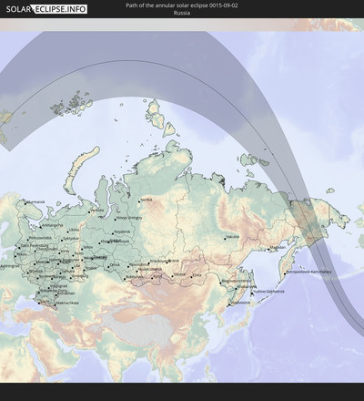The following table shows all locations with a population of more than 5,000 inside the eclipse path. Cities which have more than 100,000 inhabitants are marked bold. A click at the locations opens a detailed map.
