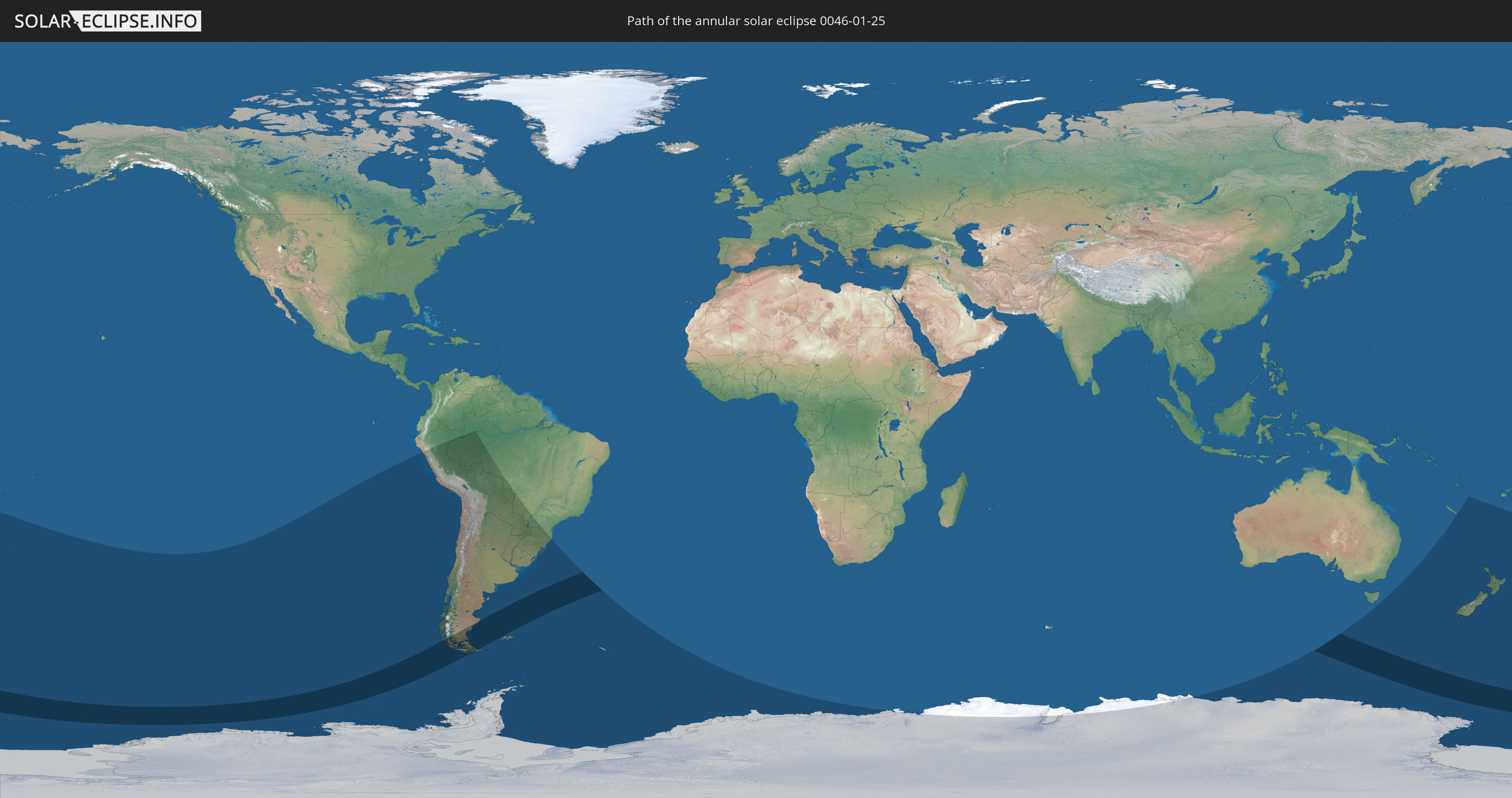 Wo kann man die Sonnenfinsternis vom 01/25/0046 sehen?