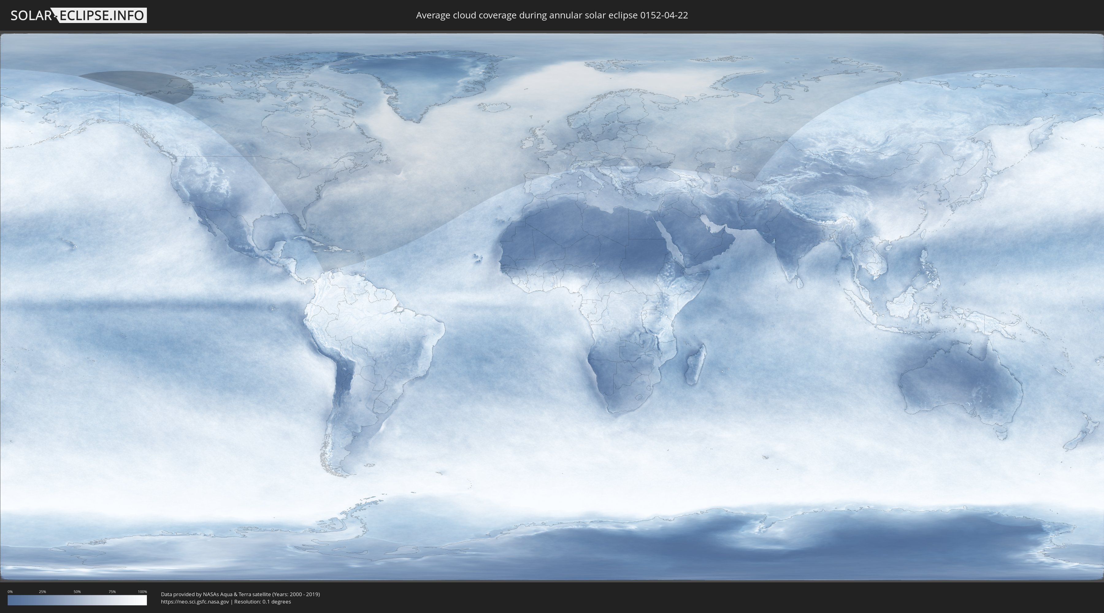 The following maps show the average cloud coverage for the day of the annular solar eclipse.