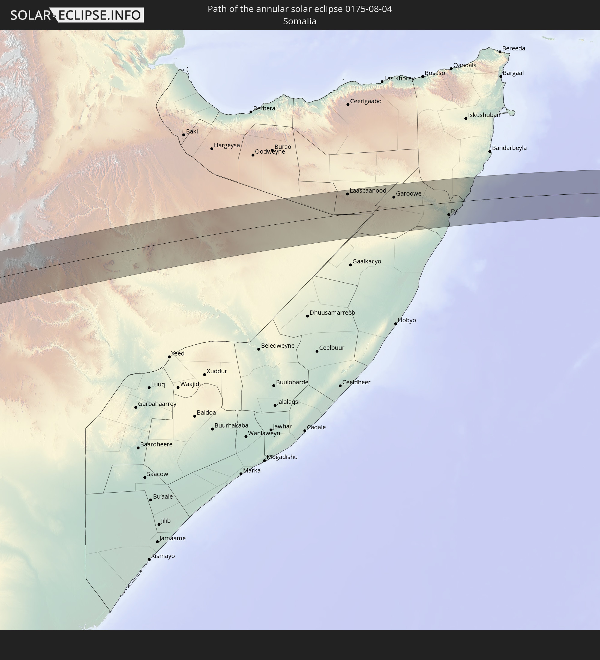 Where is the best place to see the annular solar eclipse of 08/04/0175?