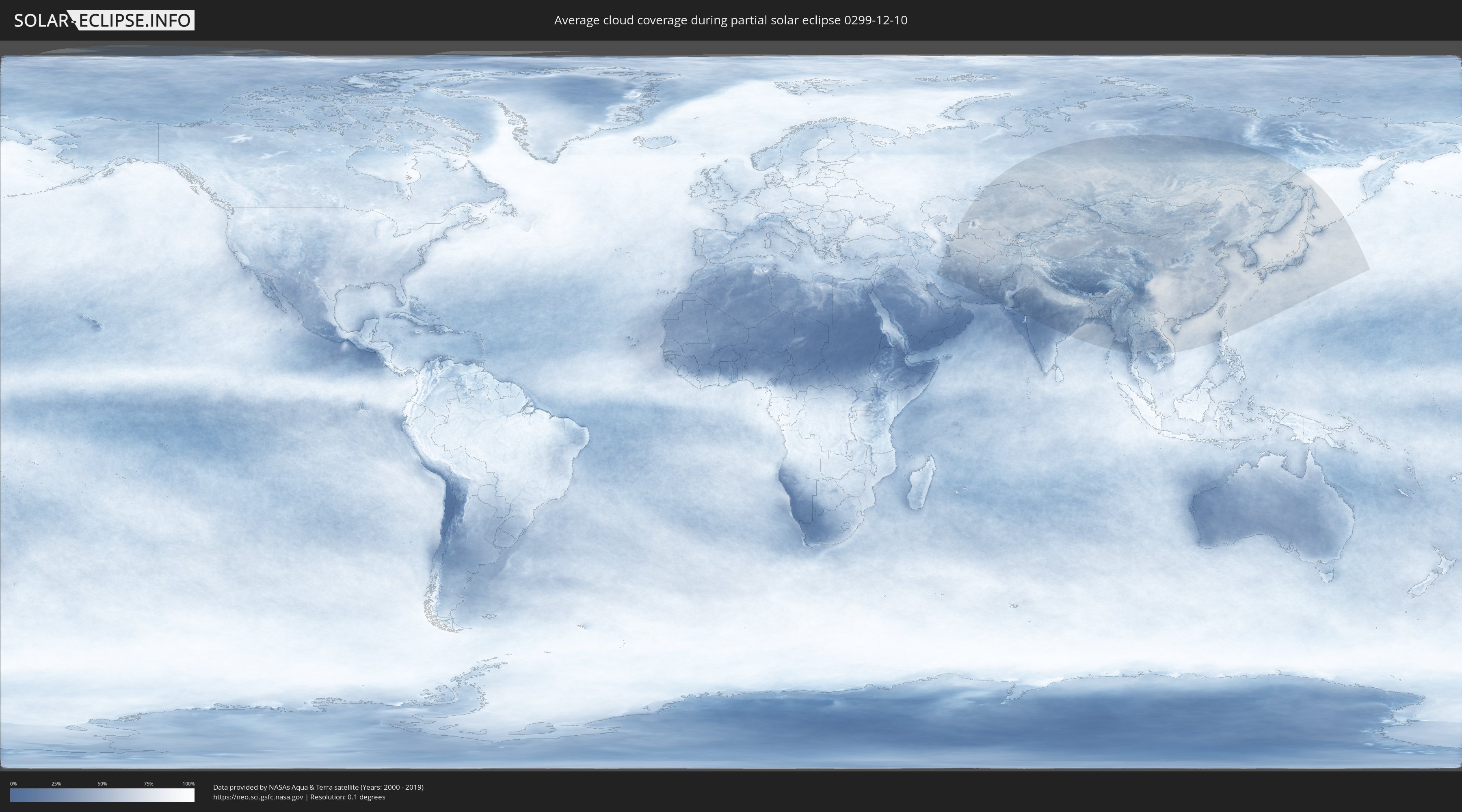 The following maps show the average cloud coverage for the day of the partial solar eclipse.
