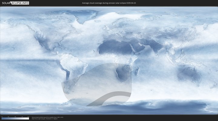 The following maps show the average cloud coverage for the day of the annular solar eclipse.