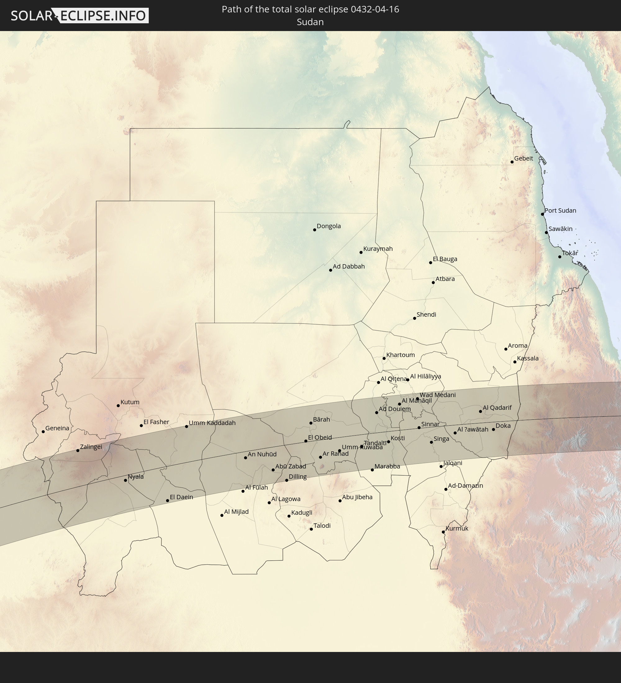 Wo kann man die Sonnenfinsternis vom 04/16/0432 sehen?