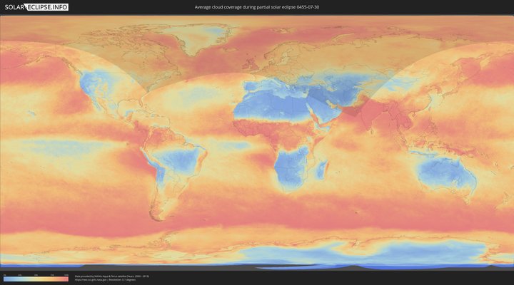 The following maps show the average cloud coverage for the day of the partial solar eclipse.
