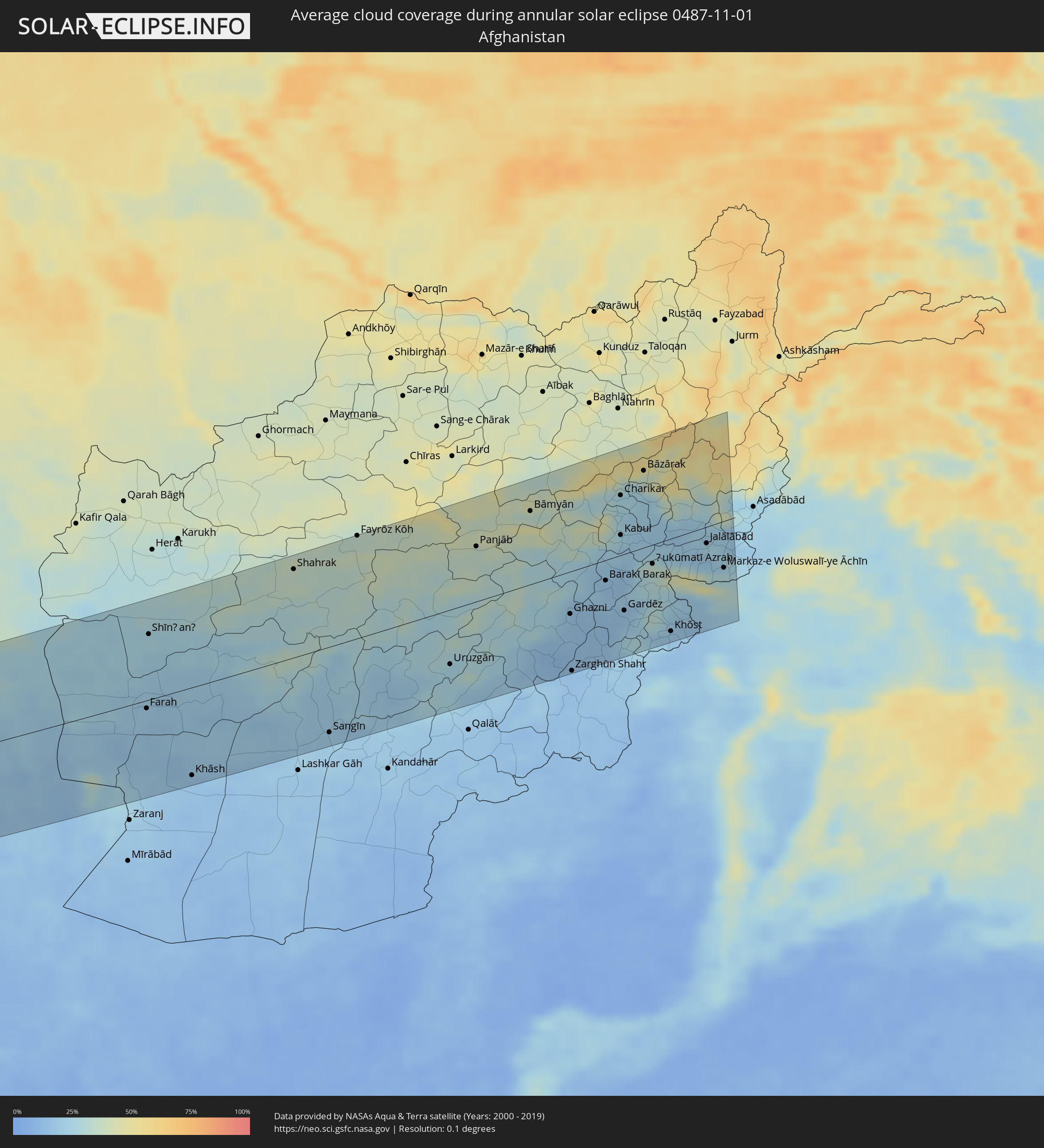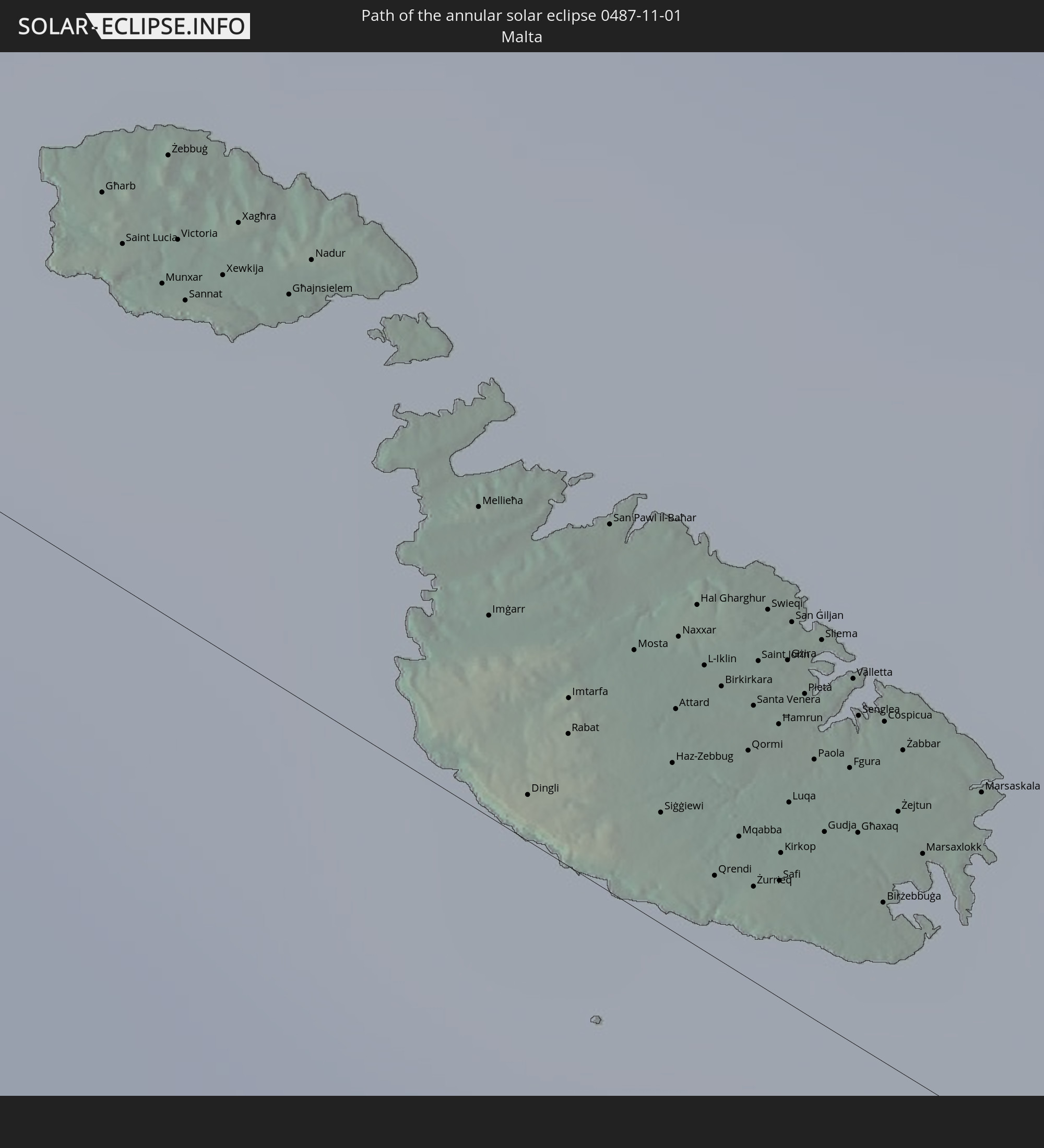 Wo kann man die Sonnenfinsternis vom 11/01/0487 sehen?