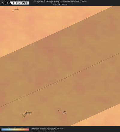The following maps show the average cloud coverage for the day of the annular solar eclipse.