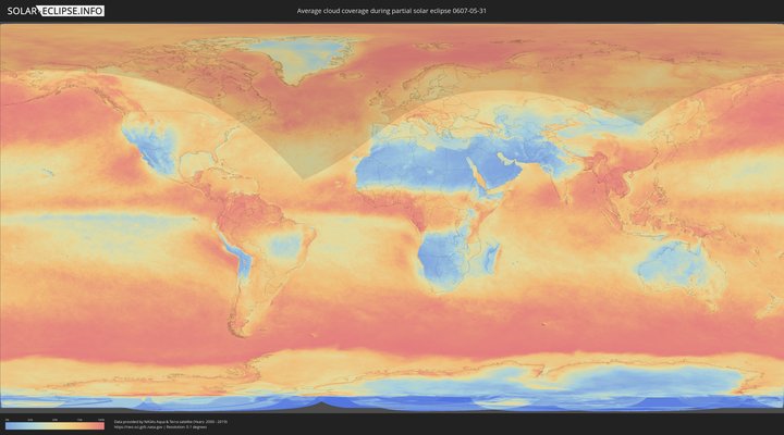 The following maps show the average cloud coverage for the day of the partial solar eclipse.