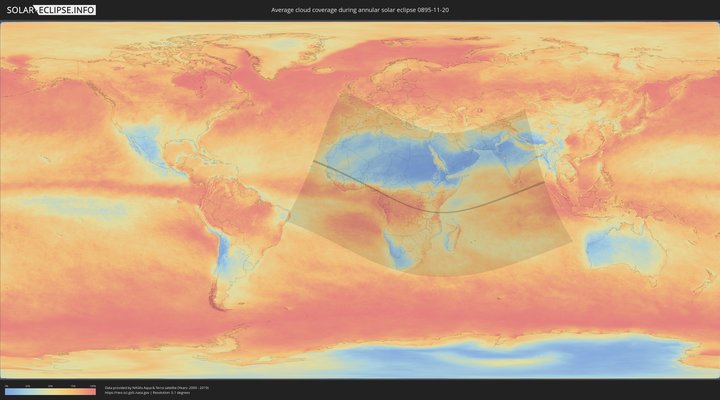 Die Sonnenfinsternis am 11/20/0895 kann man in 106 Ländern als partielle Sonnenfinsternis beobachten.