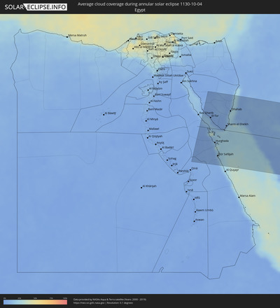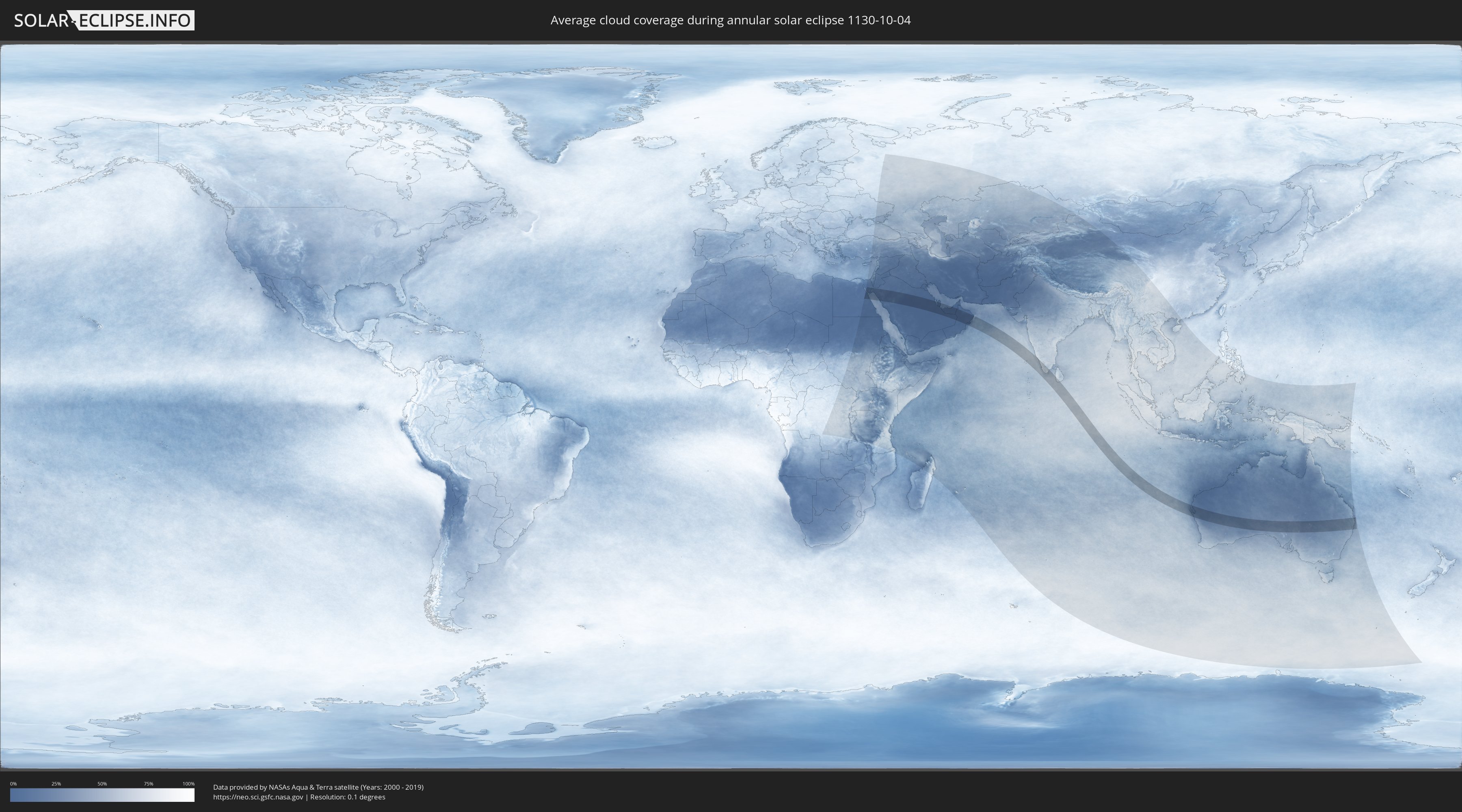 The following maps show the average cloud coverage for the day of the annular solar eclipse.