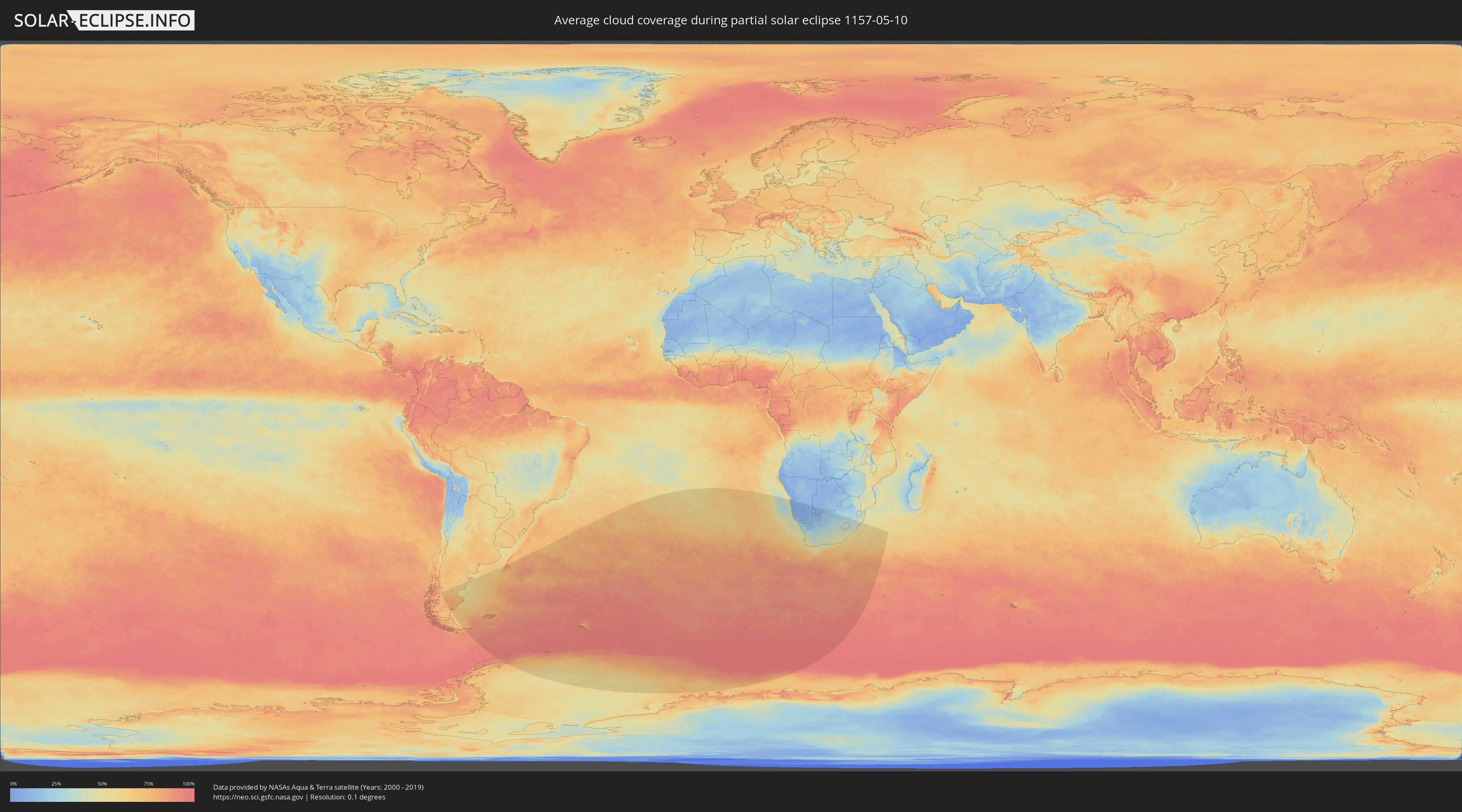 The following maps show the average cloud coverage for the day of the partial solar eclipse.