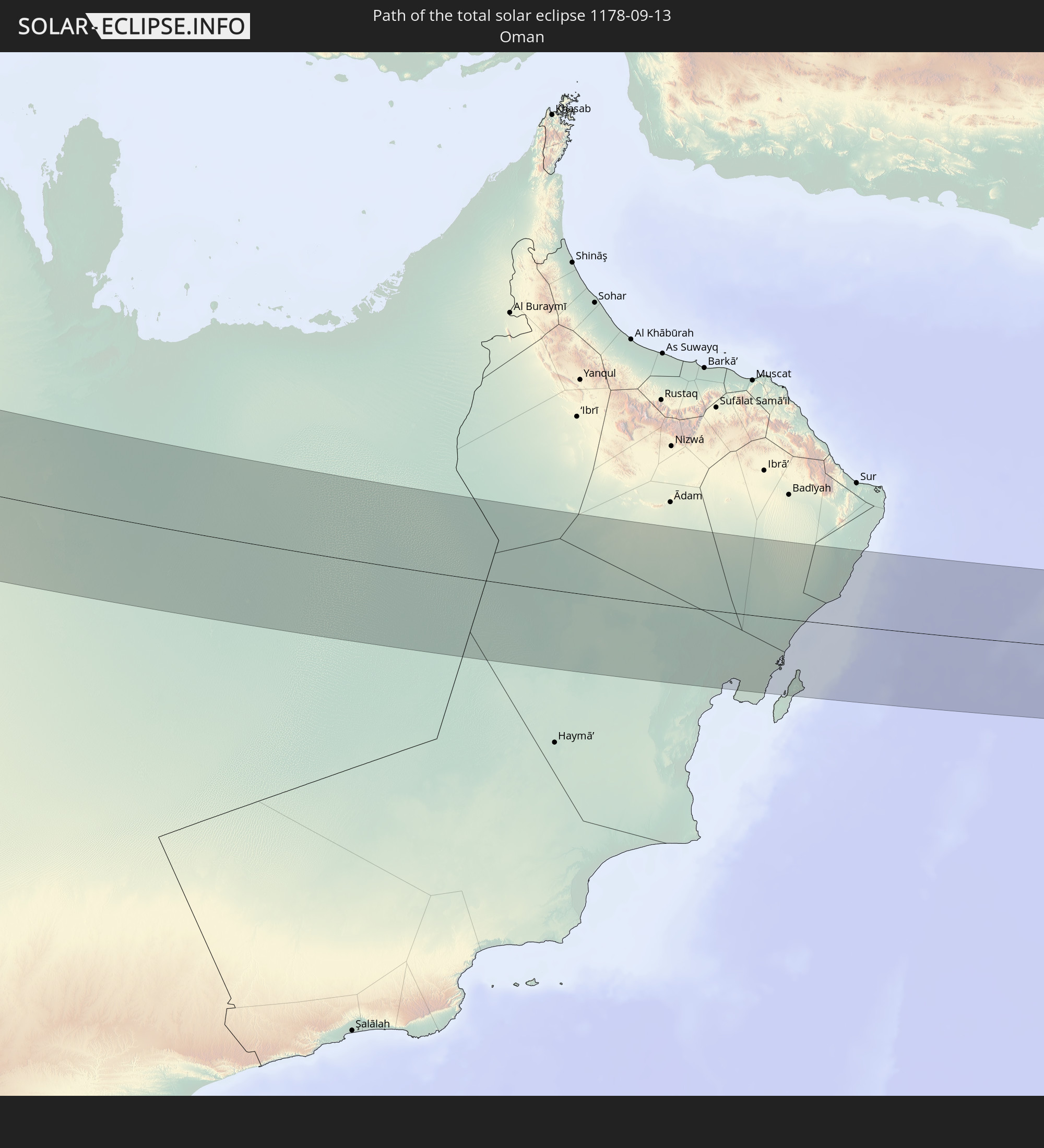 Wo kann man die Sonnenfinsternis vom 09/13/1178 sehen?