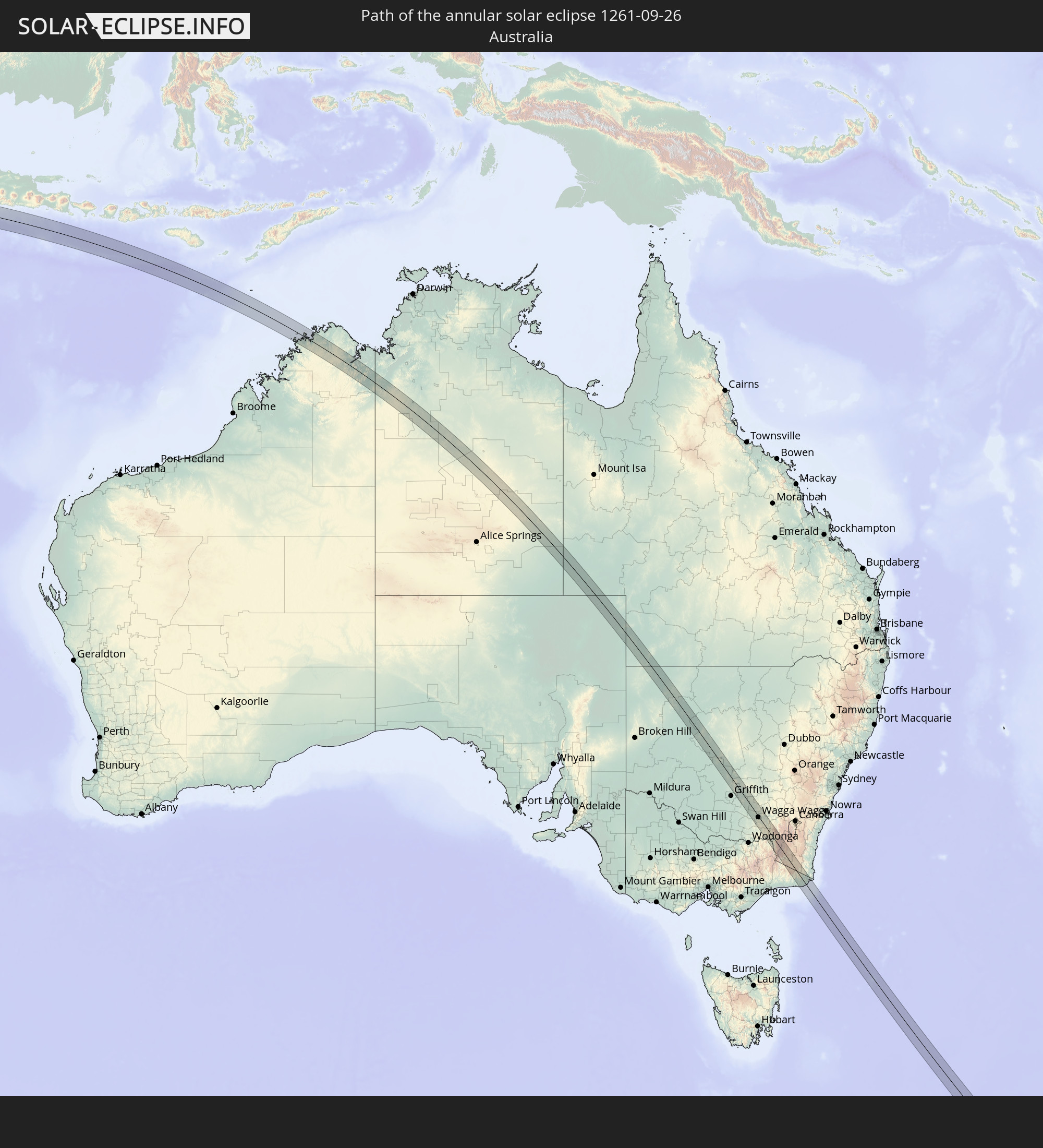 Wo kann man die Sonnenfinsternis vom 09/26/1261 sehen?
