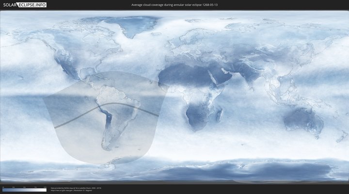 The following maps show the average cloud coverage for the day of the annular solar eclipse.