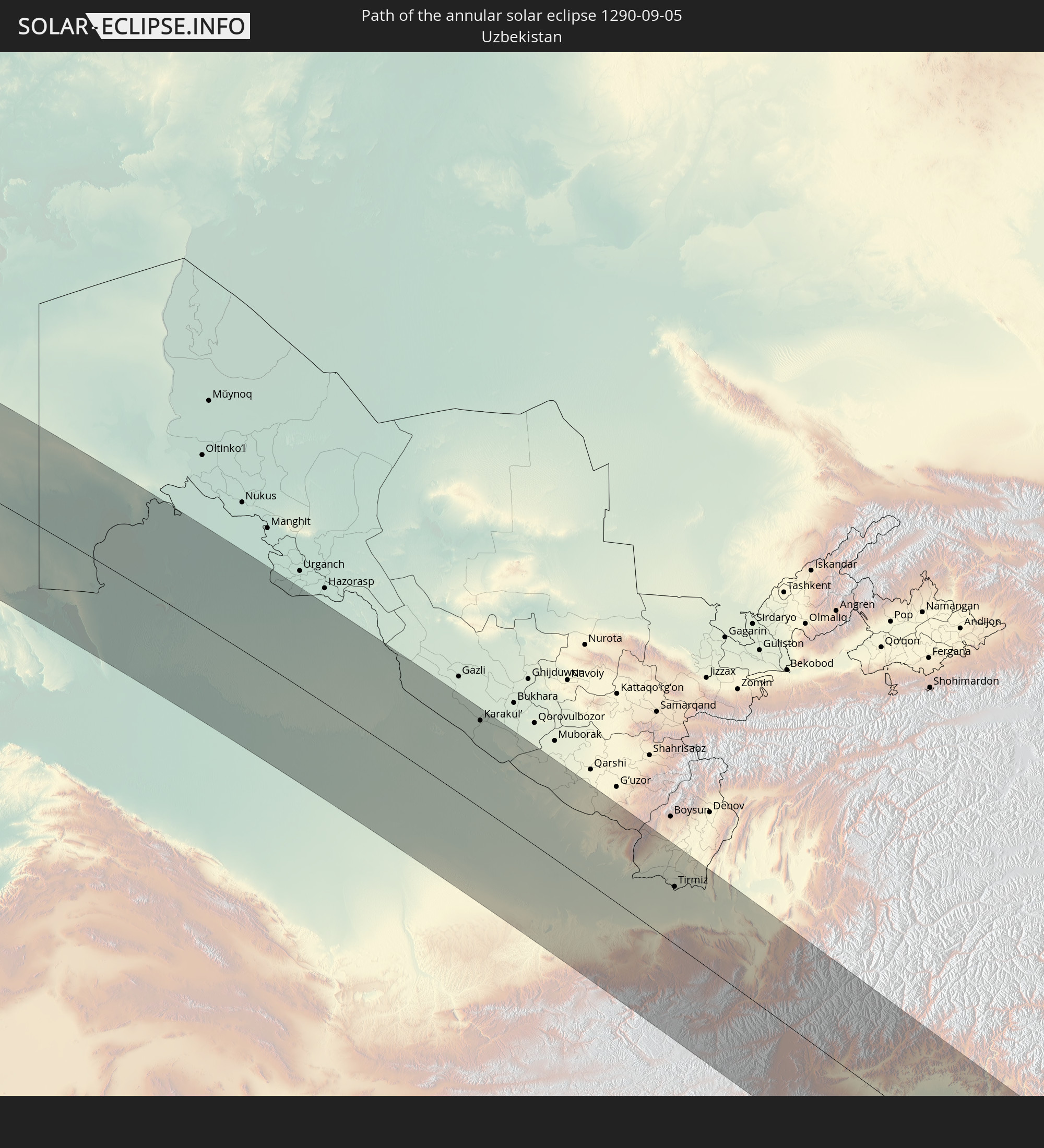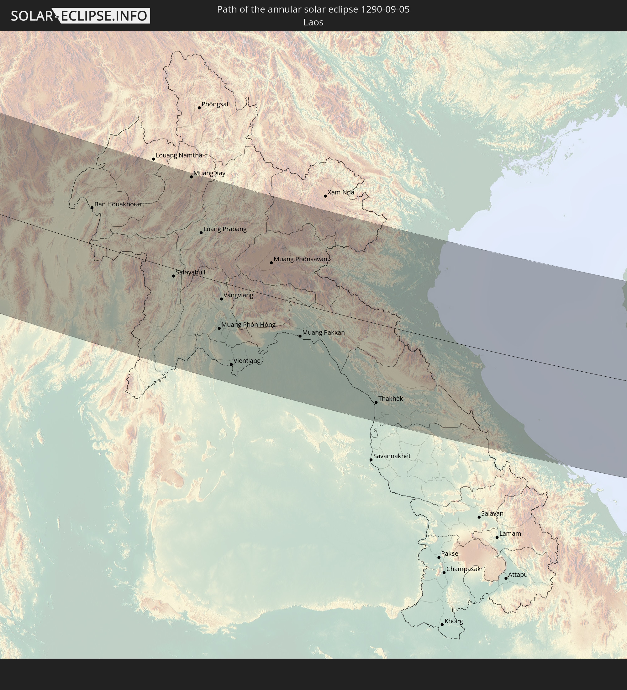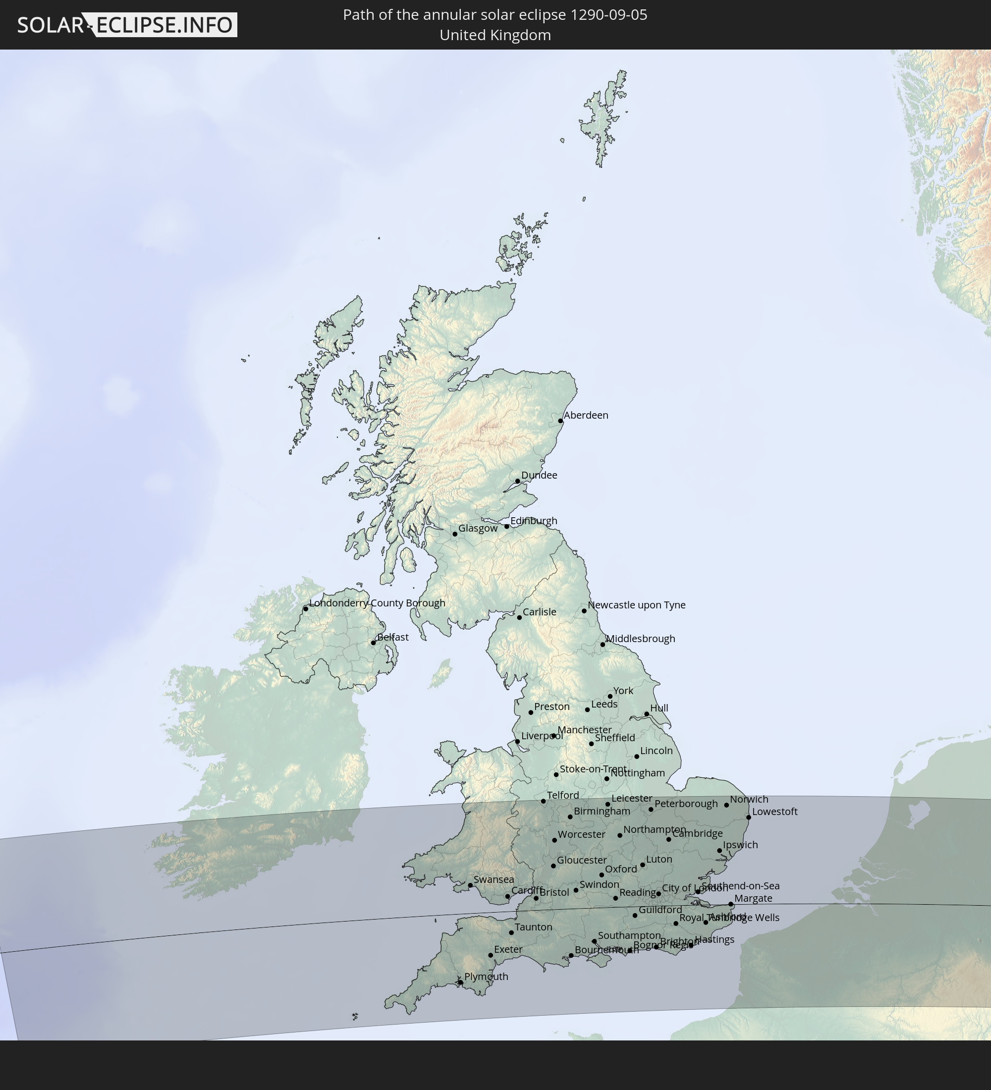 Wo kann man die Sonnenfinsternis vom 09/05/1290 sehen?