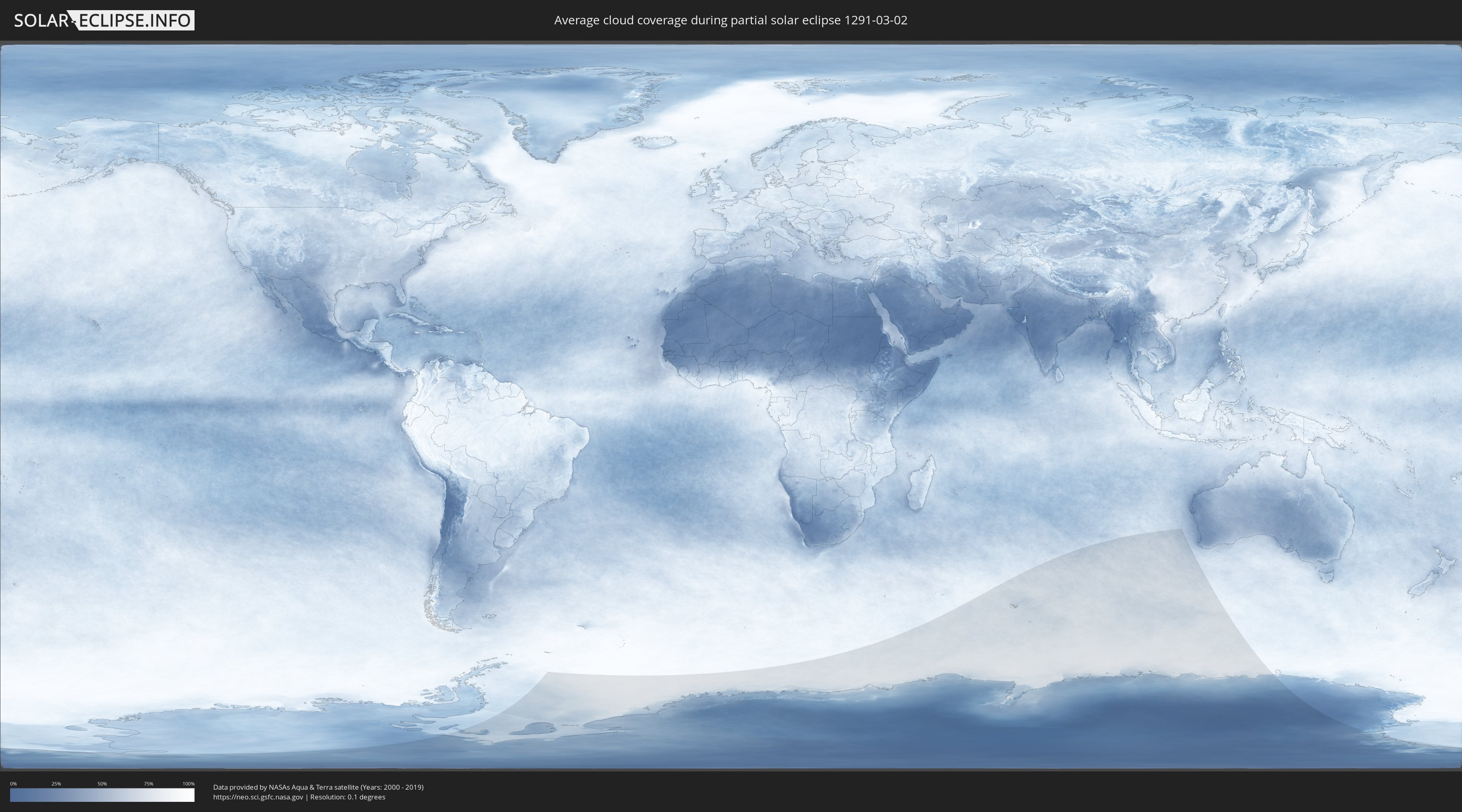 How will be the weather during the partial solar eclipse on 03/02/1291?