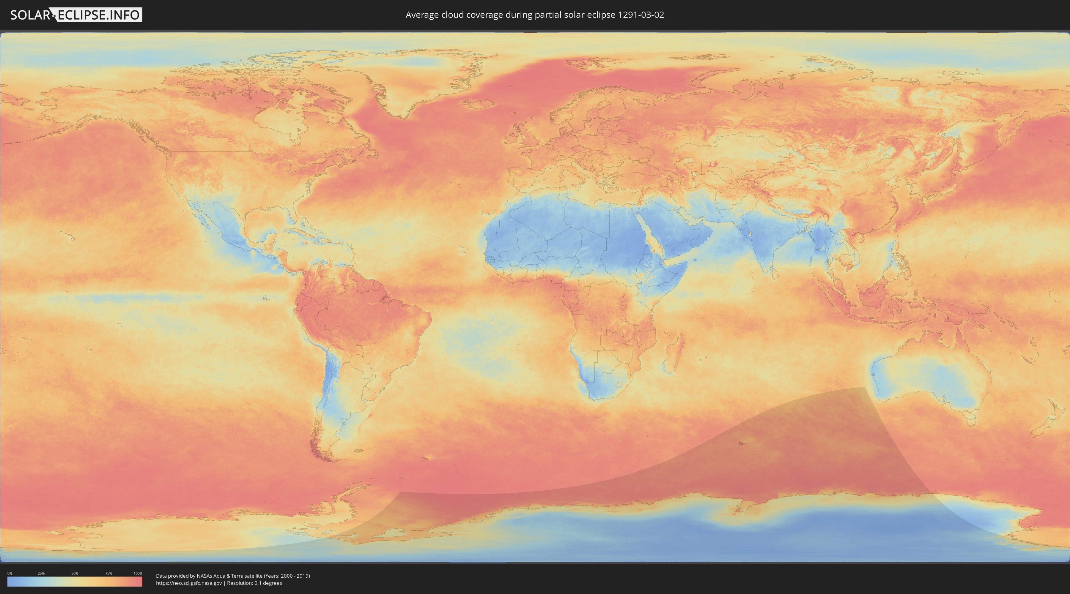 The following maps show the average cloud coverage for the day of the partial solar eclipse.