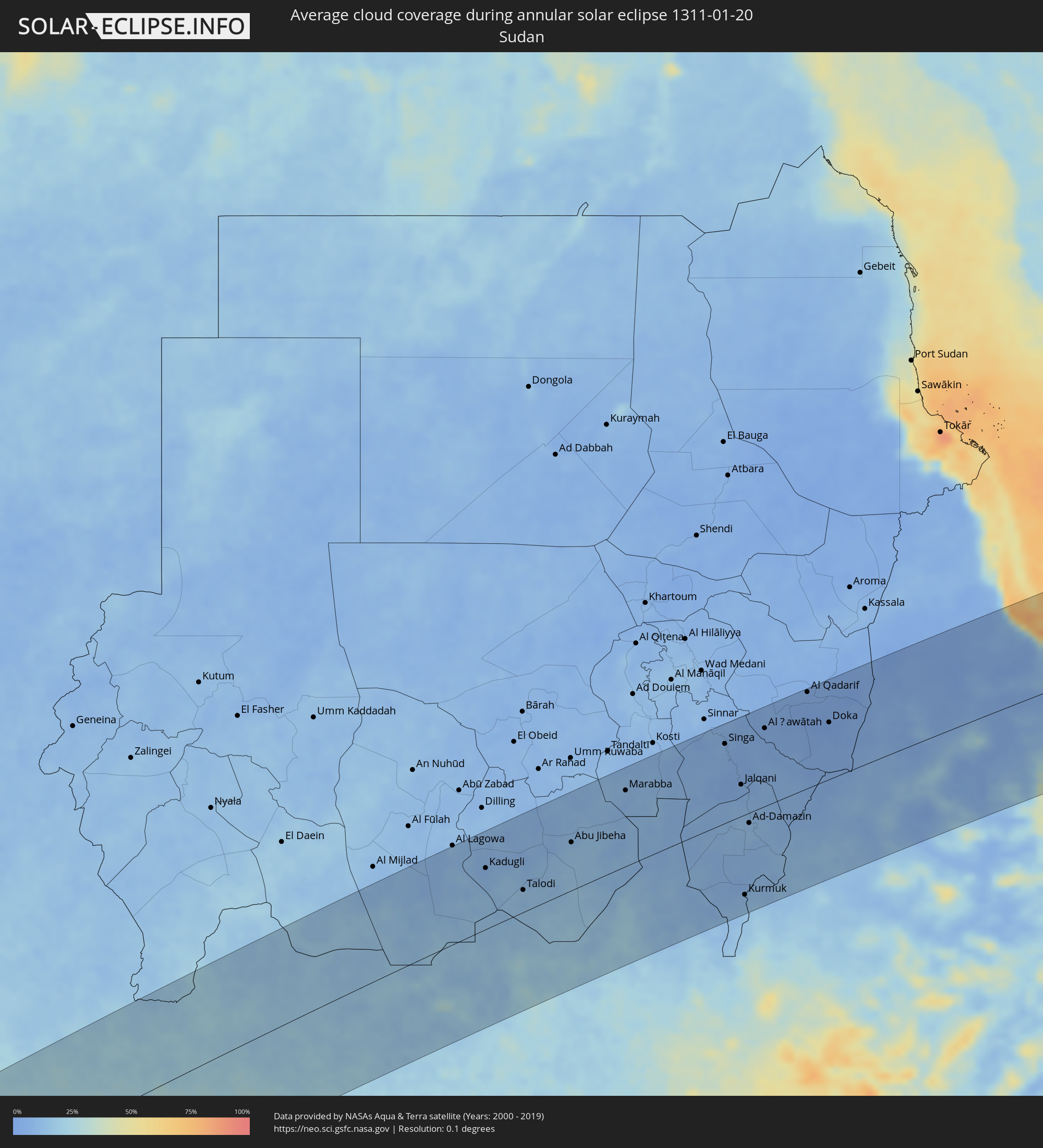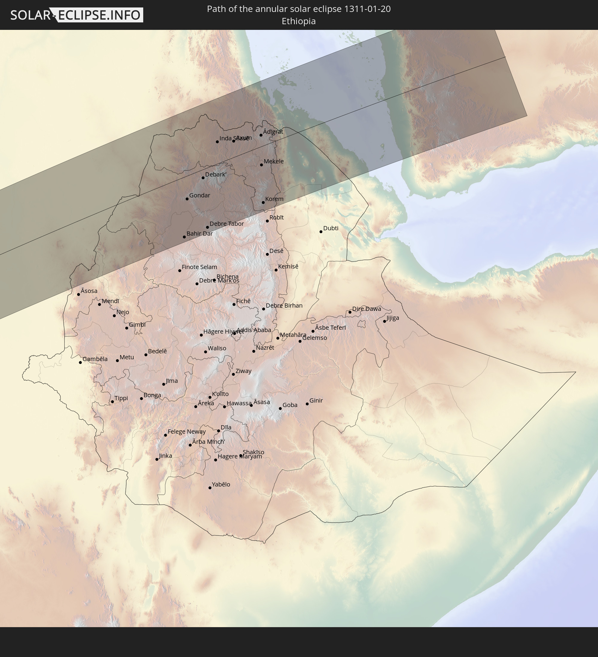 Wo kann man die Sonnenfinsternis vom 01/20/1311 sehen?