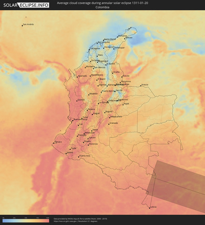 Die Sonnenfinsternis am 01/20/1311 kann man in 107 Ländern als partielle Sonnenfinsternis beobachten.