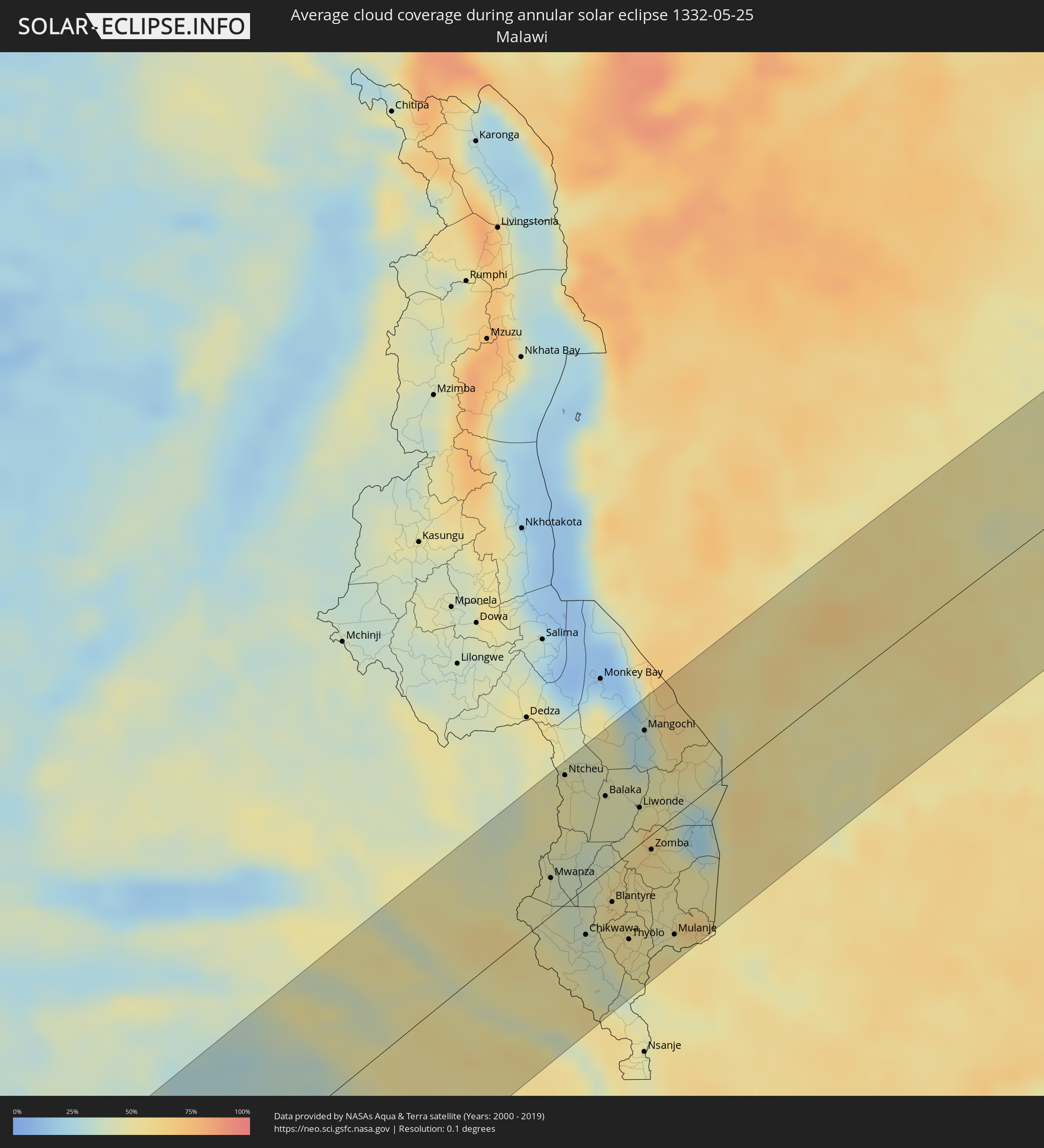 The following maps show the average cloud coverage for the day of the annular solar eclipse.