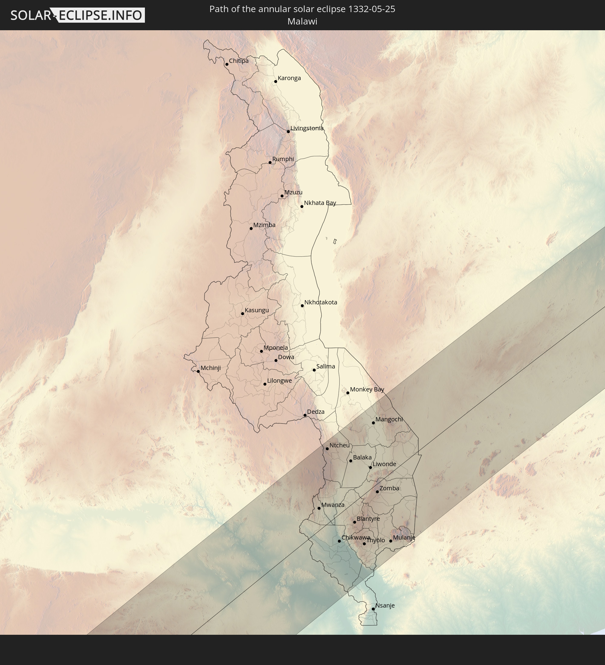 Wo kann man die Sonnenfinsternis vom 05/25/1332 sehen?