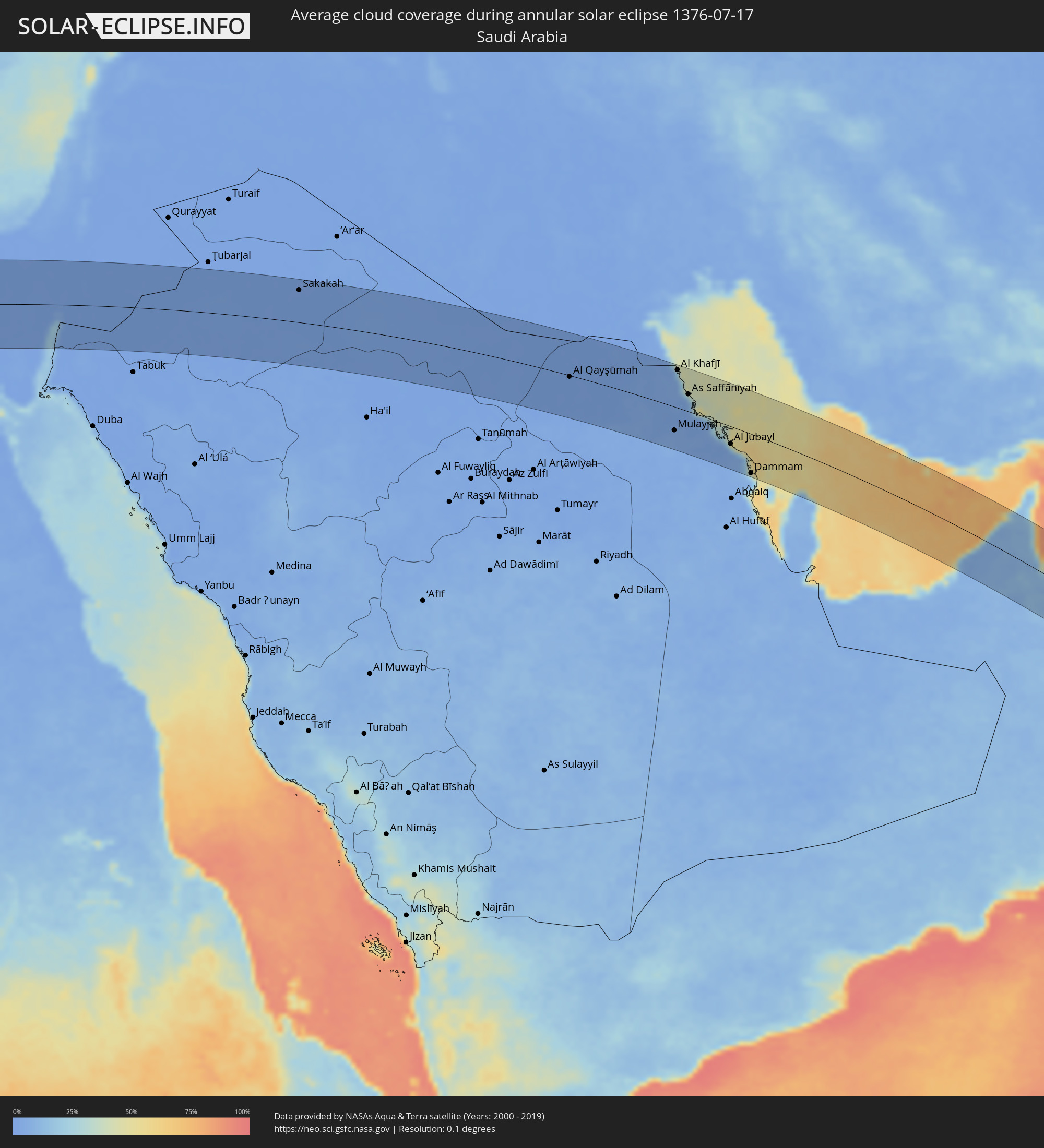 Wo kann man die Sonnenfinsternis vom 07/17/1376 sehen?