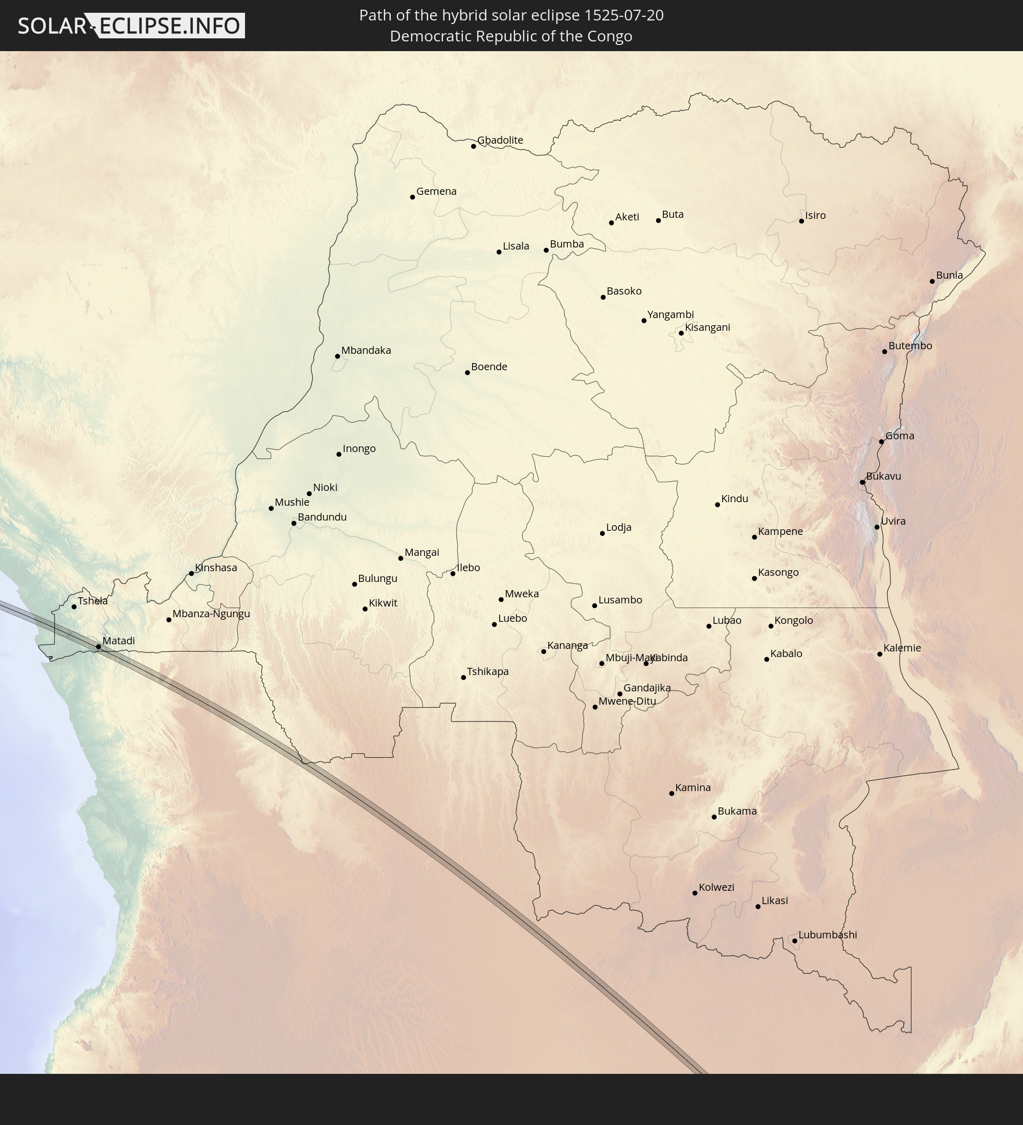 Wo kann man die Sonnenfinsternis vom 07/20/1525 sehen?