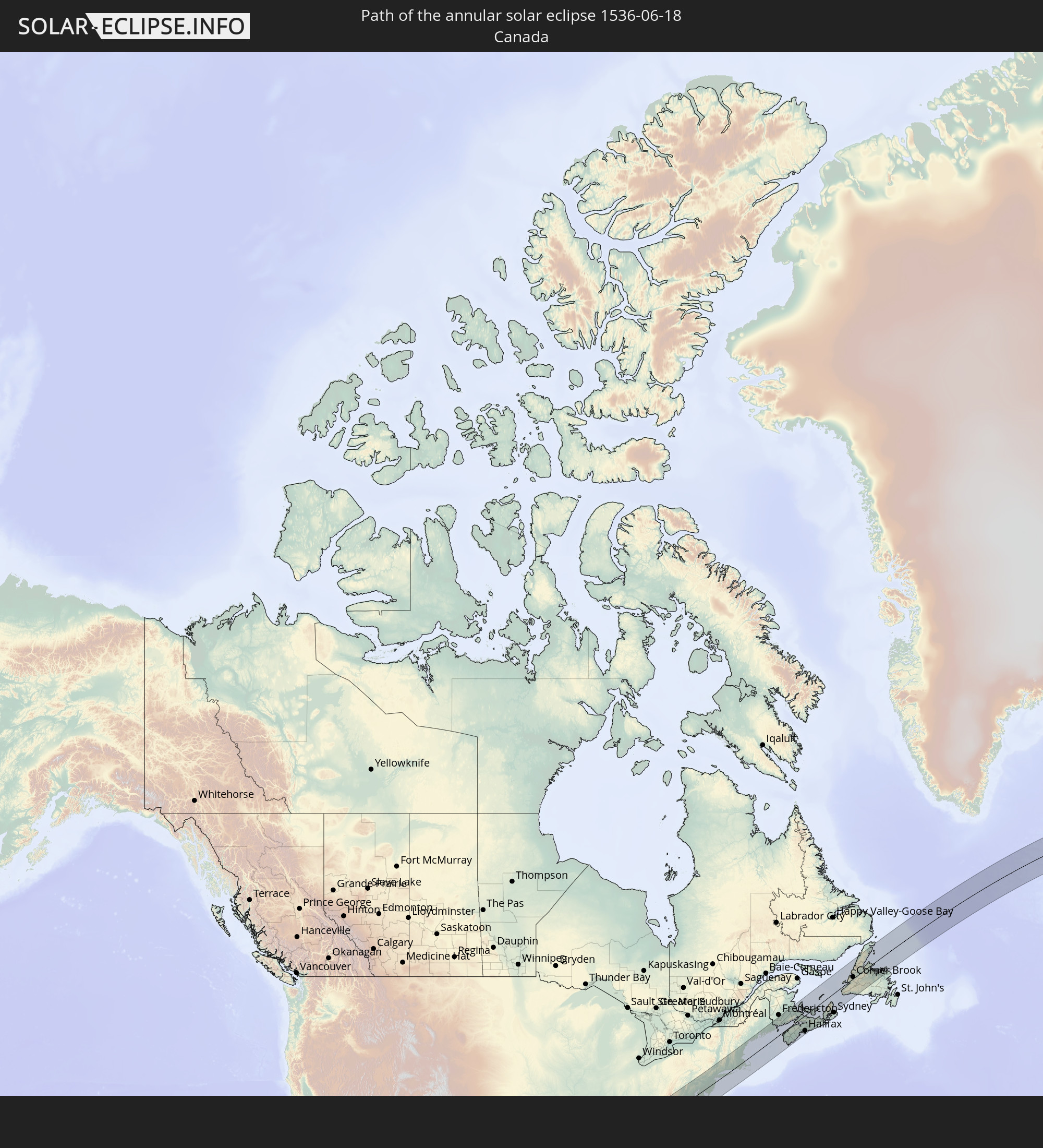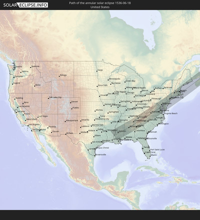 Wo kann man die Sonnenfinsternis vom 06/18/1536 sehen?