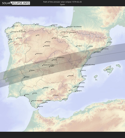 Wo kann man die Sonnenfinsternis vom 02/25/1579 sehen?